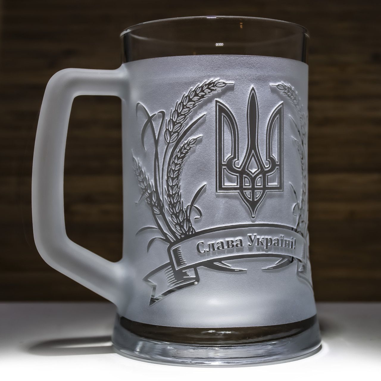Матовий пивний бокал з гравіюванням Слава Україні "Колосок" SandDecor