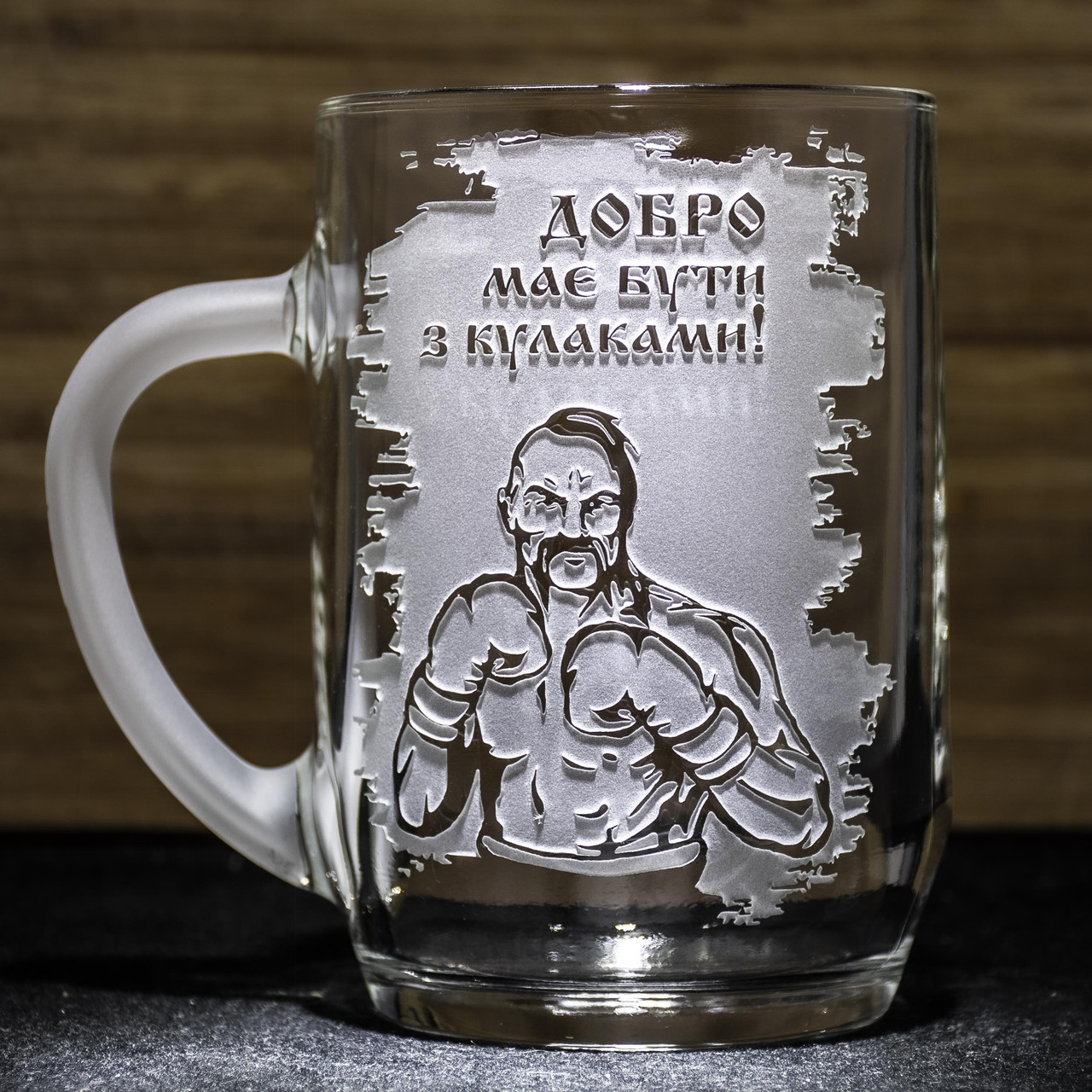 Келих для пива з гравіюванням Добро має бути з кулаками з матовою ручкою