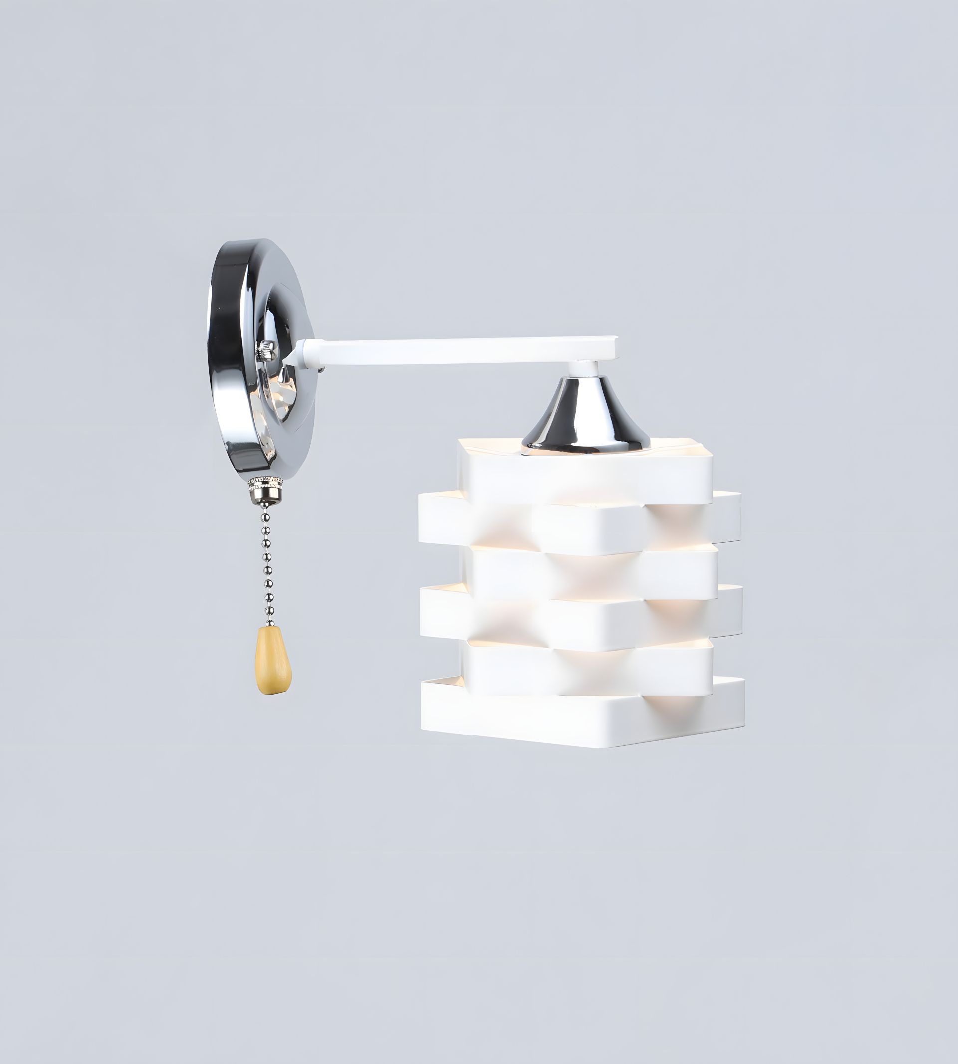 Каркас виготовлений з міцного металу білого та хромового кольору, металевий плафон та мотузкою за домогою якою ви можете вмикати бра, що підкреслює сучасний дизайн.