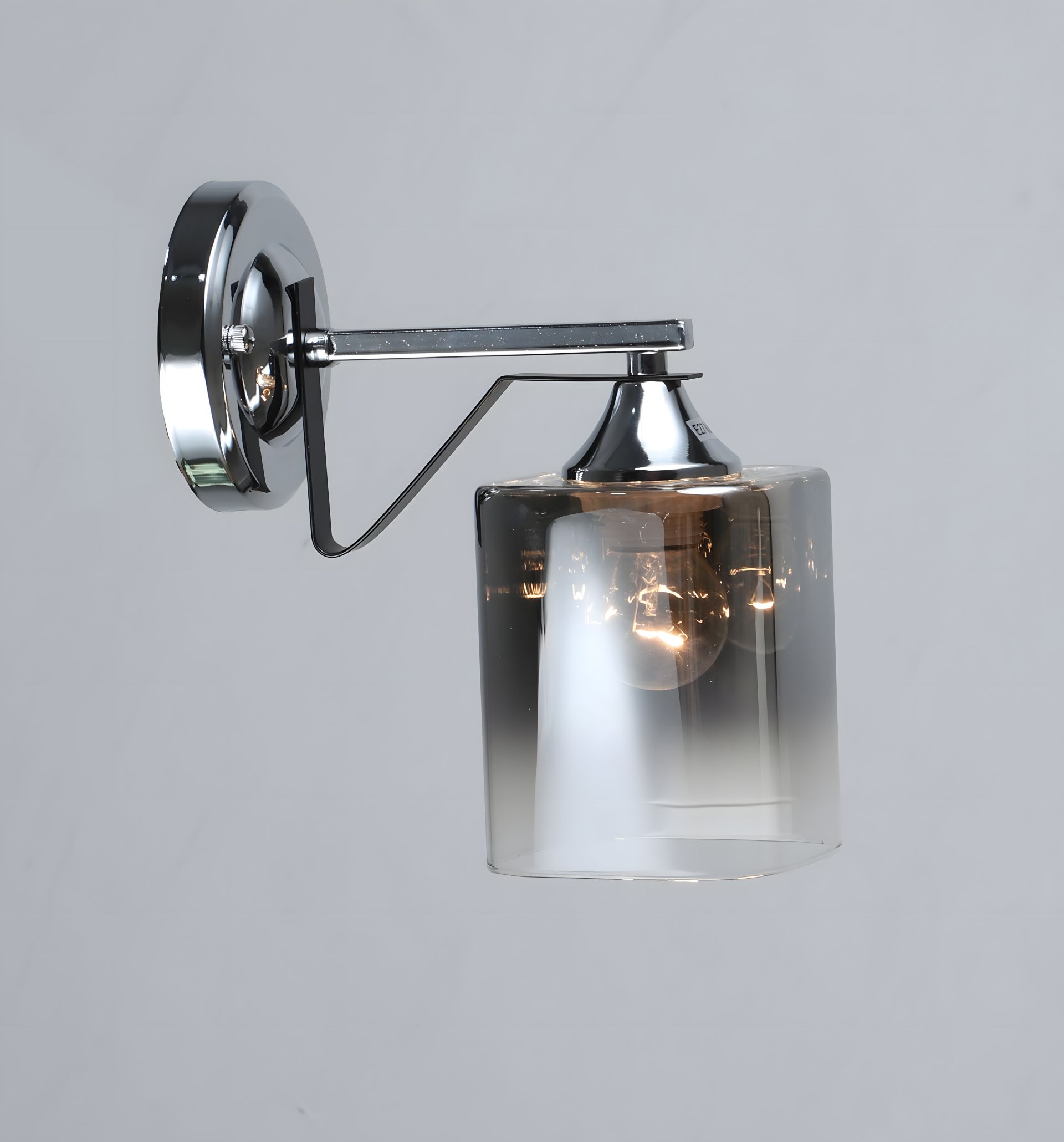 Каркас виготовлений з металу хромового та чорного кольору, що надає бра елегантного та стильного вигляду. Один плафон зі скла та металу розсіює світло, створюючи приємну атмосферу в приміщенні.