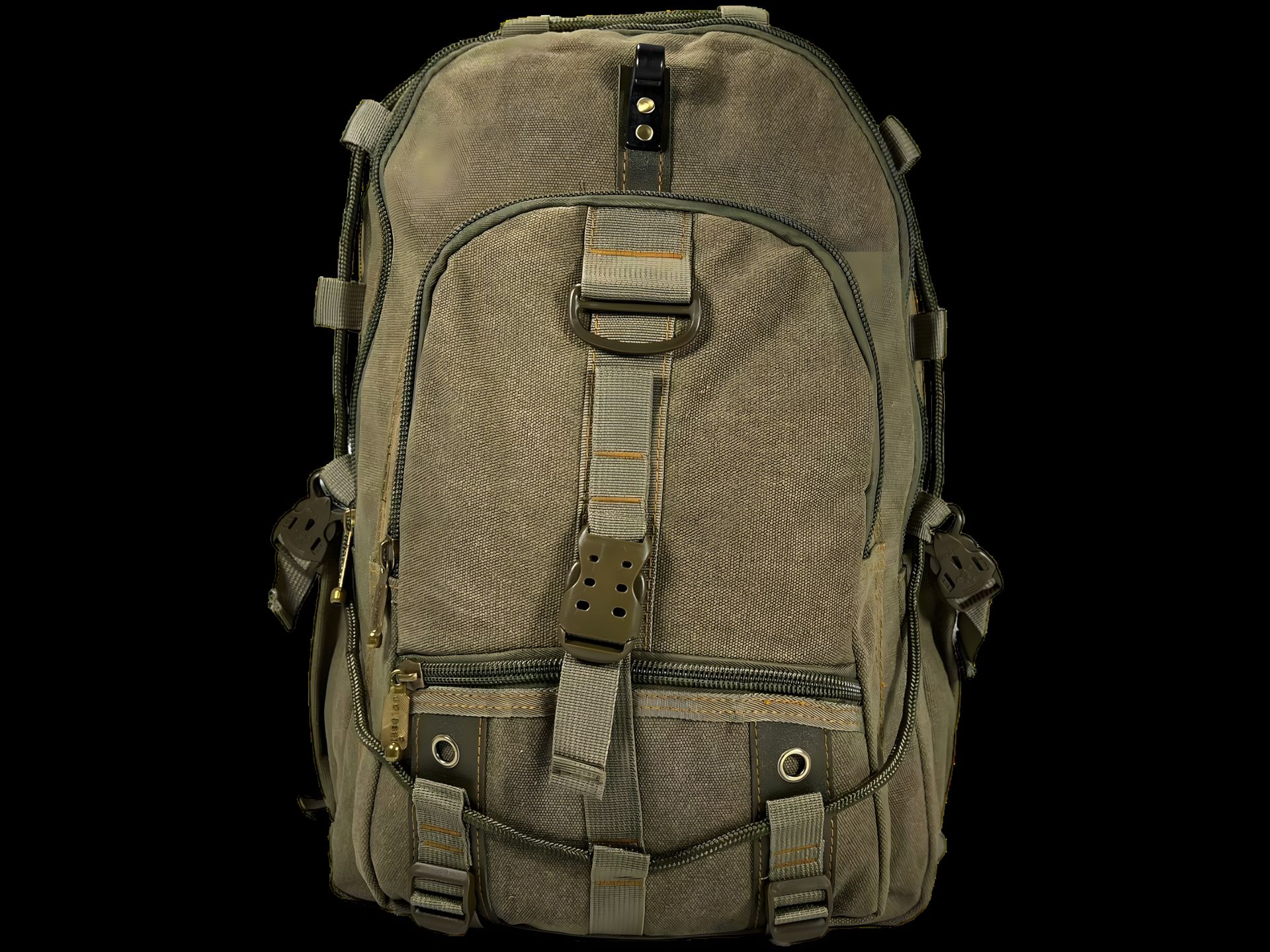 Брезентовий рюкзак на три відділи, 30 л, з кишенями та стяжками, колір хакі