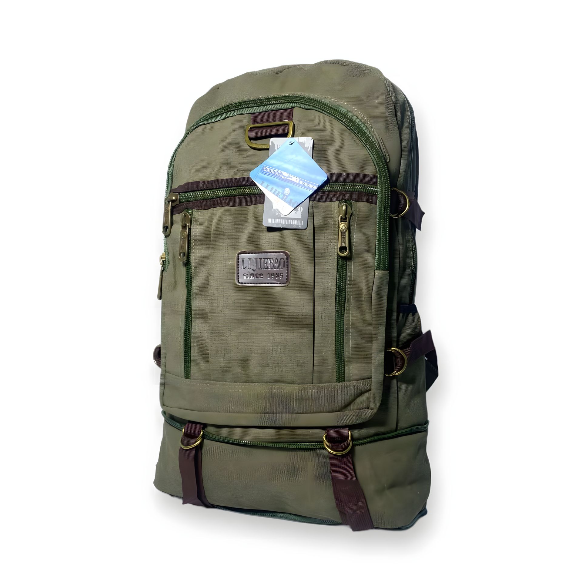 Головною особливістю цієї моделі є можливість розширення розміру.За рахунок додаткової блискавки в нижній частині, можна при необхідності, додати ще 10 см висоти. Має одне відділення, чотири фронтальних кишені, бокові кишені. Виконаний рюкзак за всіма вимогами комфортного пересування в місті та зберігання своїх речей. Виготовлений з міцного брезенту, витримує великувагу. Міцно та надійно прошитий, має додаткові кріплення та стяжки.