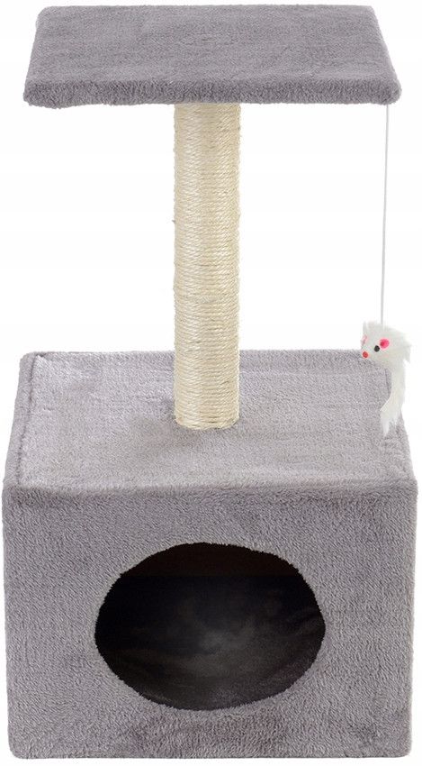 Виготовлений з приємного на дотик плюшевого матеріалу. Стовп обв'язаний міцної сизалеві мотузкою, нагорі якої є оглядовий майданчик. Це ідеальна кігтеточка для вашого маленького кошеняти!