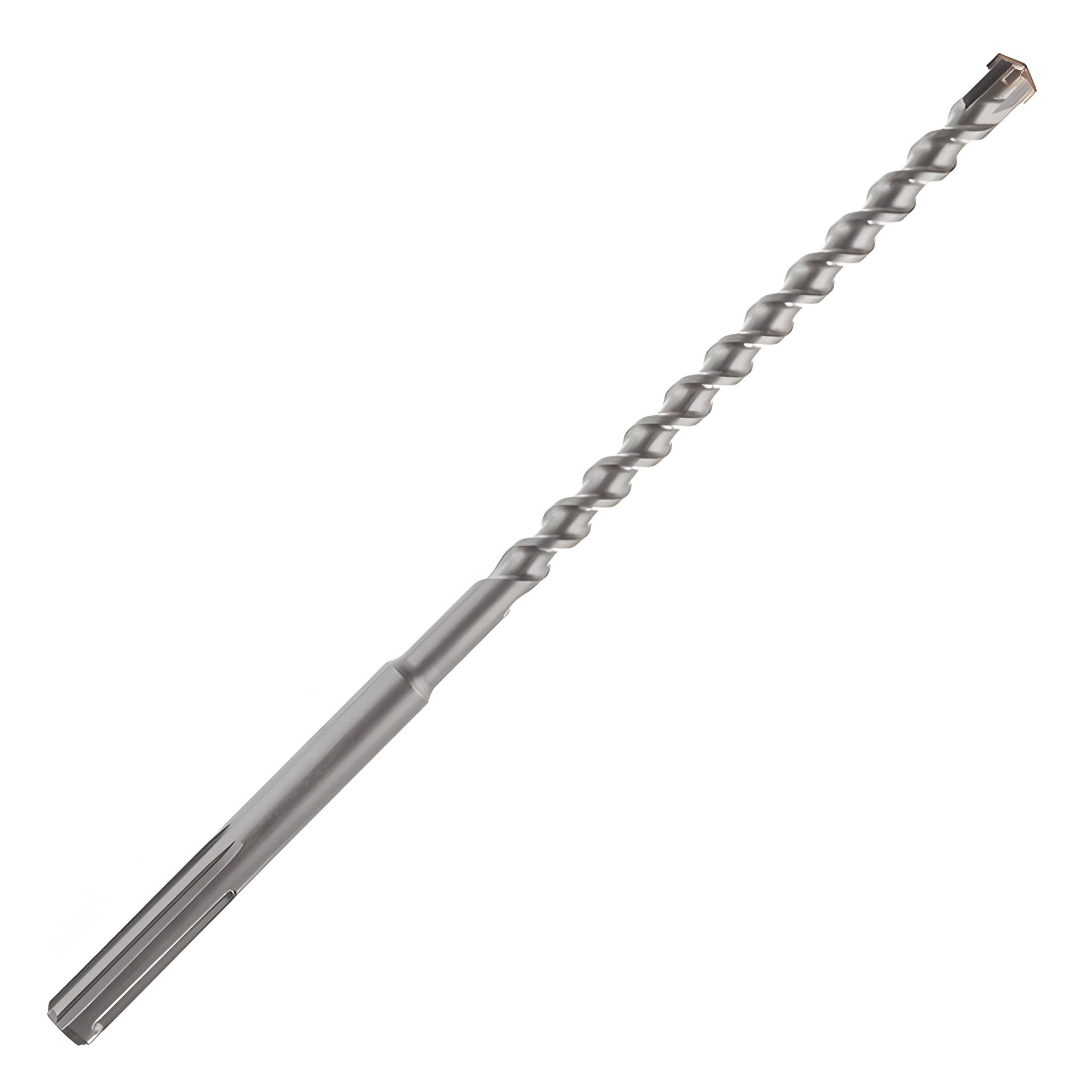 Твердосплавний наконечник з чотирма різальними гранями забезпечує легкий початок свердління та підвищену точність, що особливо важливо для центрування та запобігання ковзанню інструмента в початковій фазі свердління. Спіральна різальна частина ефективно виводить пил з робочого простору, мінімізуючи теплову дію, що важливо для довговічності бура та якості виконаних отворів.