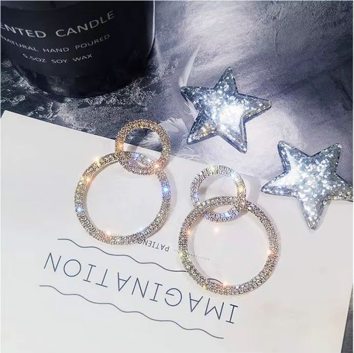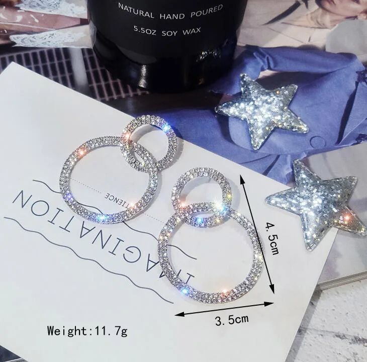 Сережки кільця великі подвійні сережки стильні кристали вечірні Довгі висячі