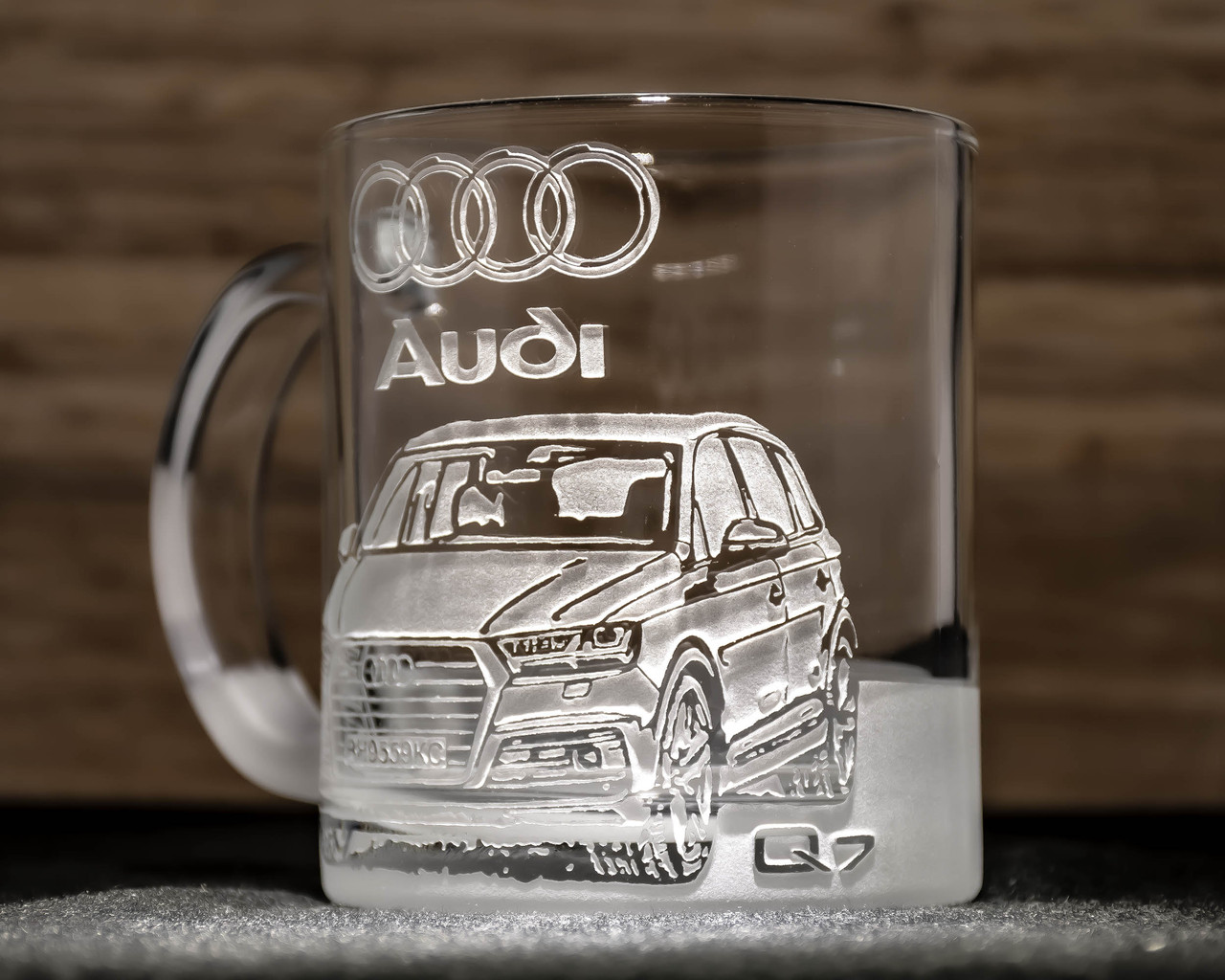 Чашка для чаю та кави з гравіюванням автомобіля та логотипу Audi Q7 Ауді