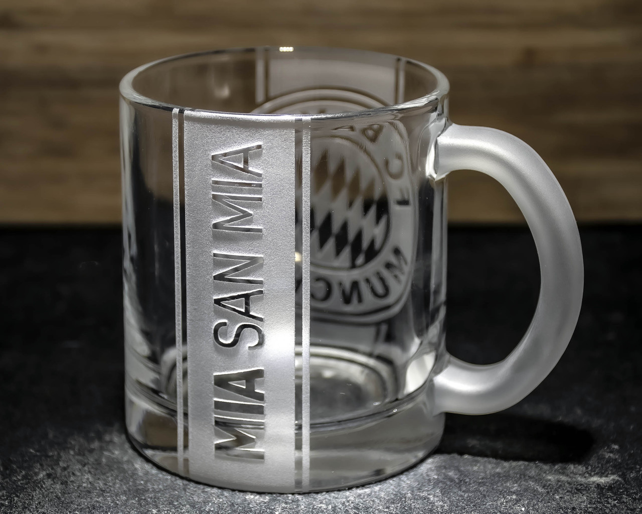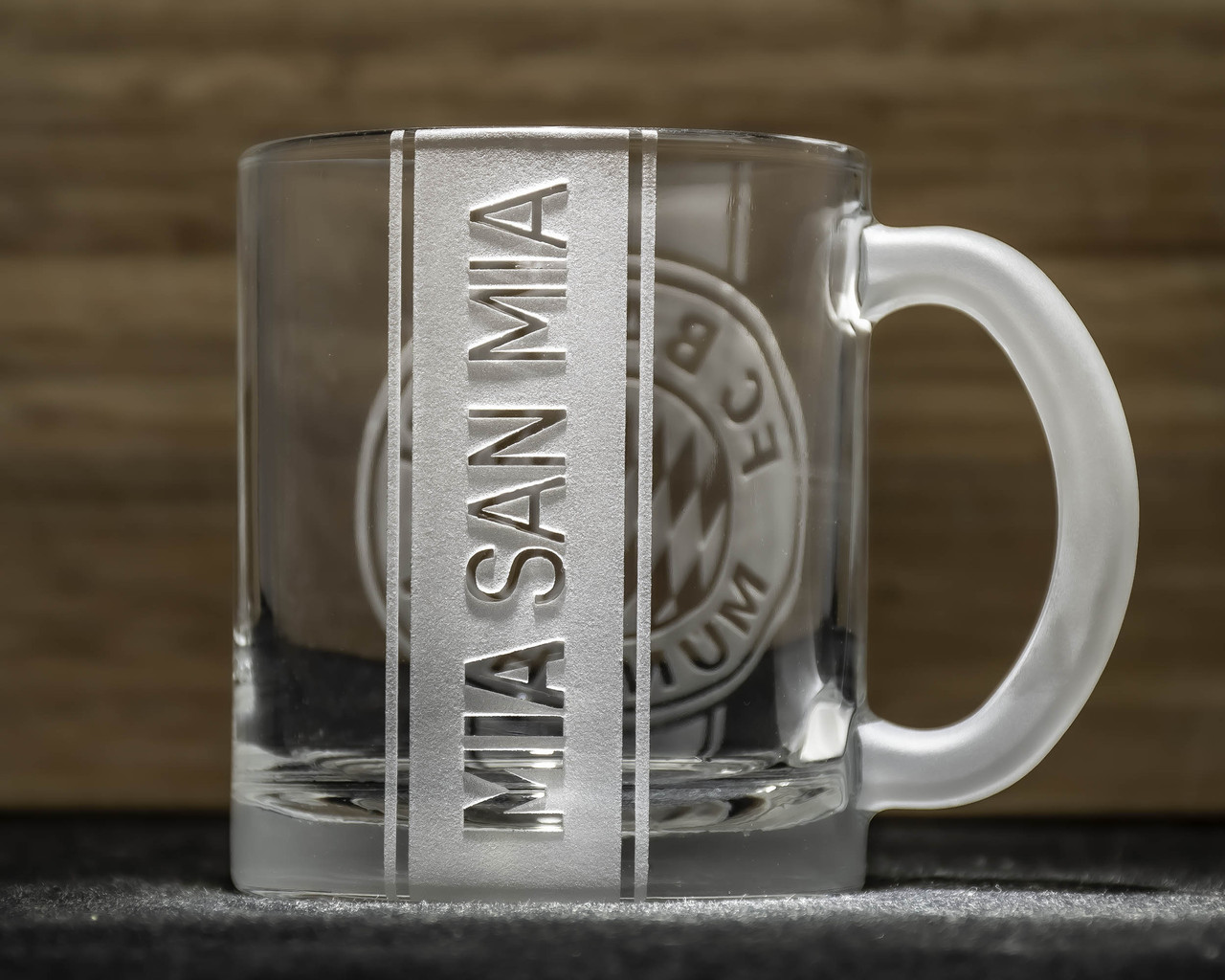 Чашка для чаю та кави з гравіюванням на дві сторони FC Bayern Munchen ФК Баварія Мюнхен з лозунгом команди і з матовою ручкою
