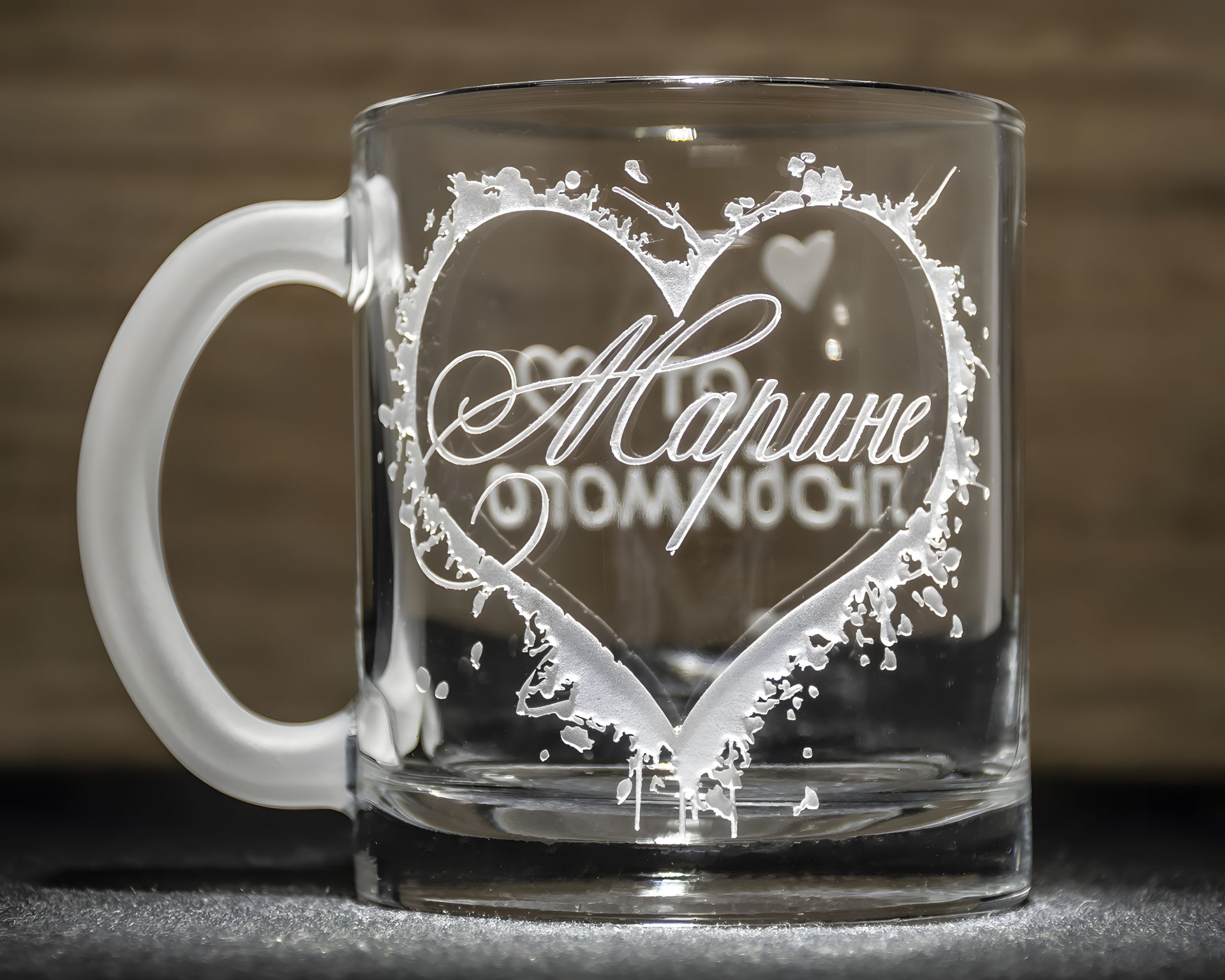 - Гравіювання з характером: Напис вигравіюваний не лазером, не є наліпкою або нафарбованим, а нанесений на скло з використанням особливої технології механічної обробки. Це створює відчуття рельєфу та об'ємності зображення, що надає чашці деякої чарівності.