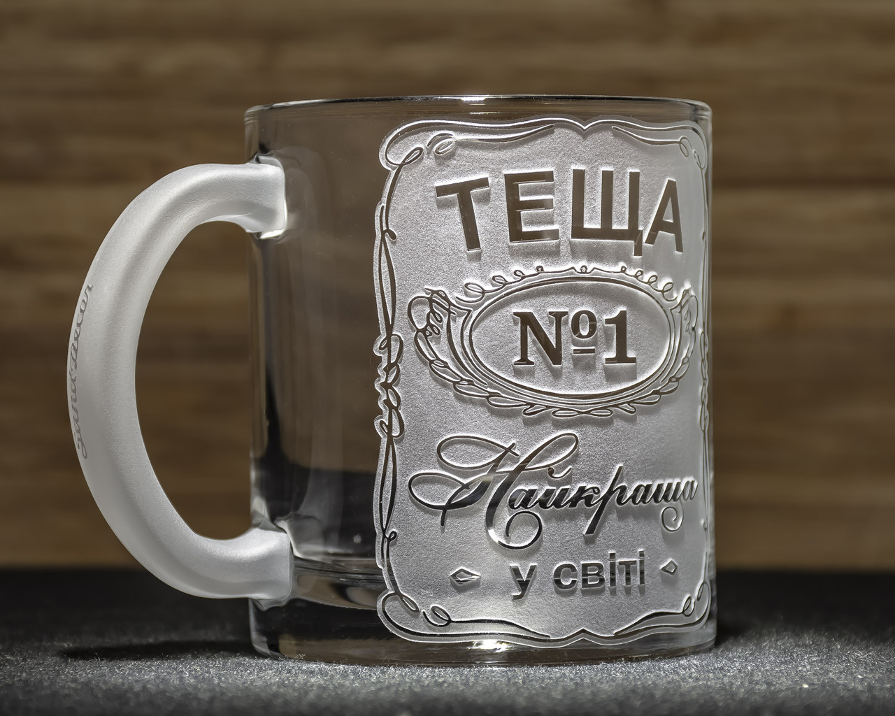 - Гравіювання з характером: Напис вигравіюваний не лазером, не є наліпкою або нафарбованим, а нанесений на скло з використанням особливої технології механічної обробки. Це створює відчуття рельєфу та об'ємності зображення, що надає чашці деякої чарівності.