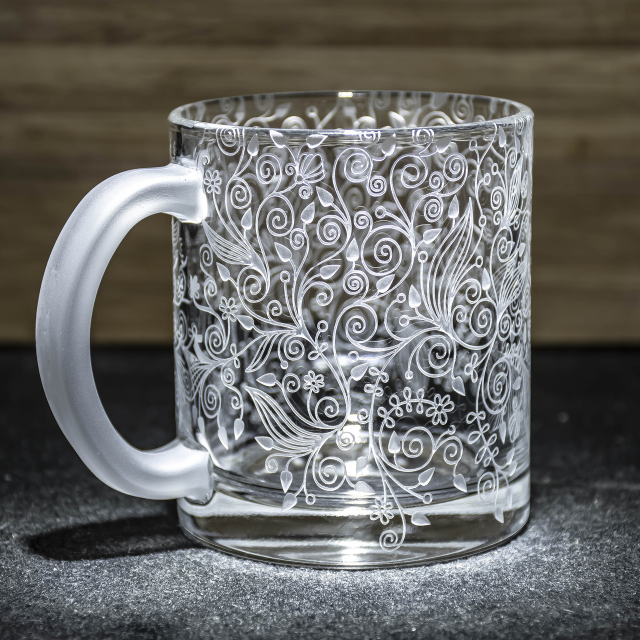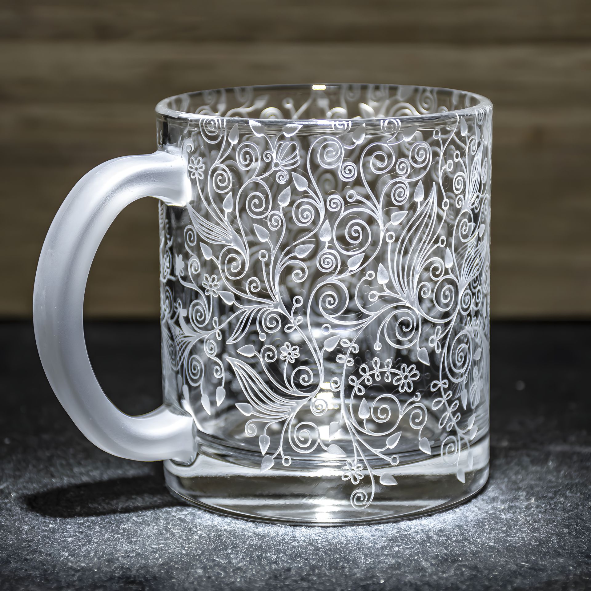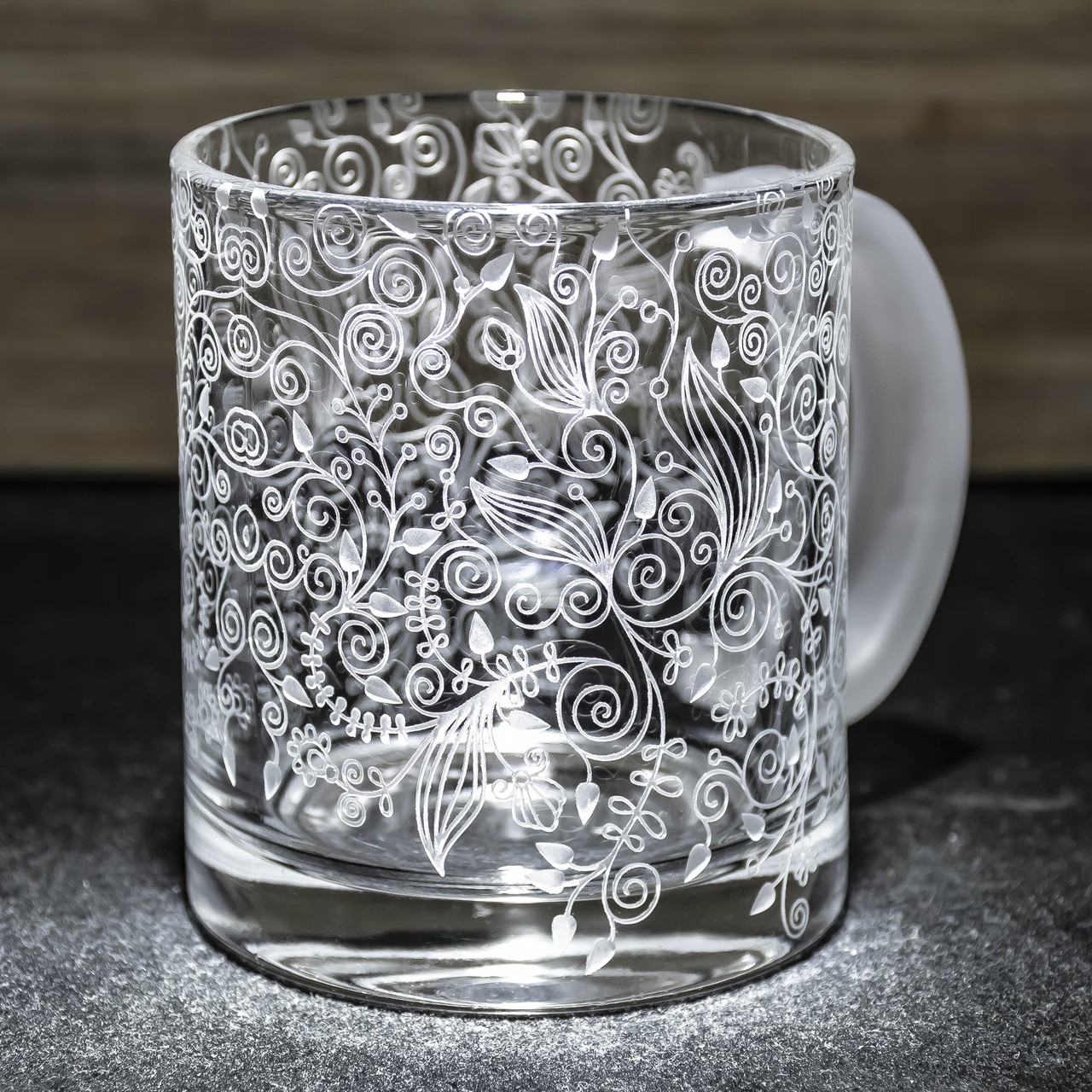 Кружка для чаю та кави з з ручним мехнічним гравіюванням.