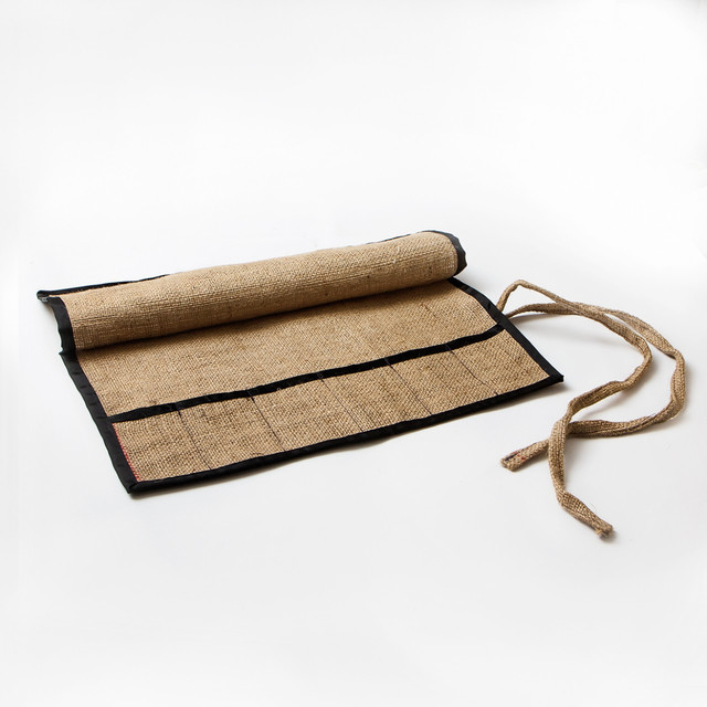 Кожен інструмент знаходиться в індивідуальній кишені. Розташування кишень в шаховому порядку ізолює леза один від одного, що оберігає їх від ушкодження. Для того, щоб закрити скатку, досить просто міцно зав'язати шлеї навколо неї.