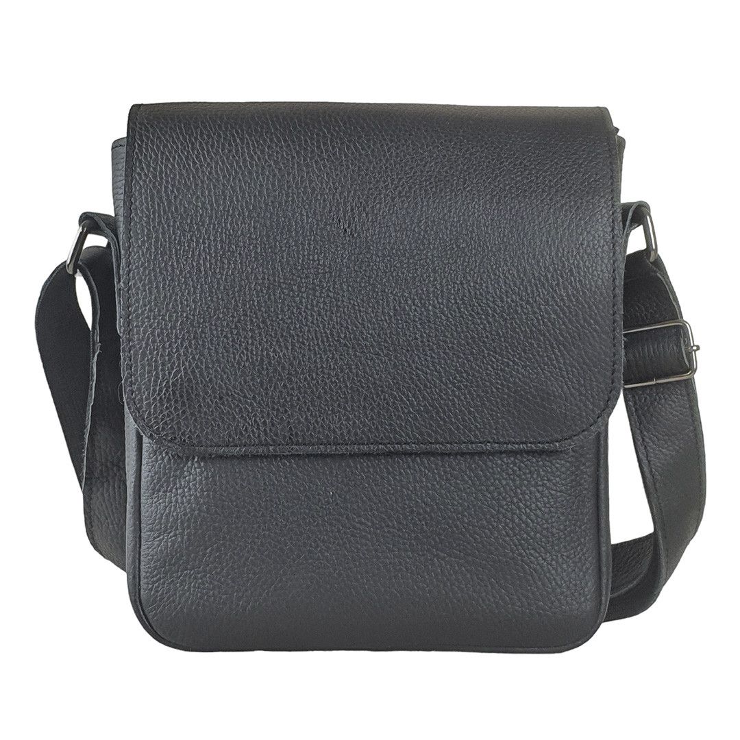 Чоловіча сумка через плече GS 23*20*7 см шкіряна флотар чорна