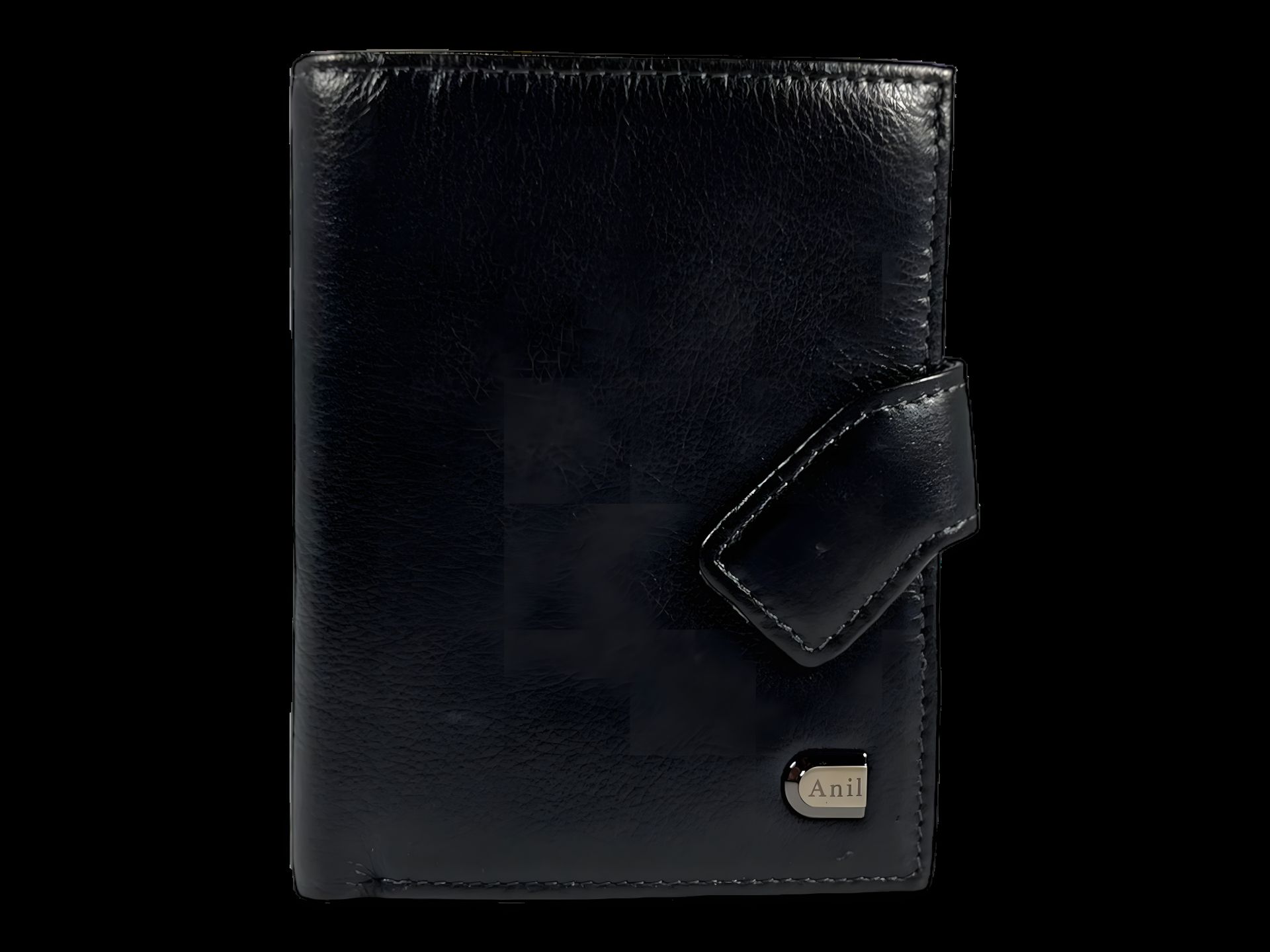 Чоловічий гаманець з натуральної шкіри з кнопкою та магнітом, чорного кольору