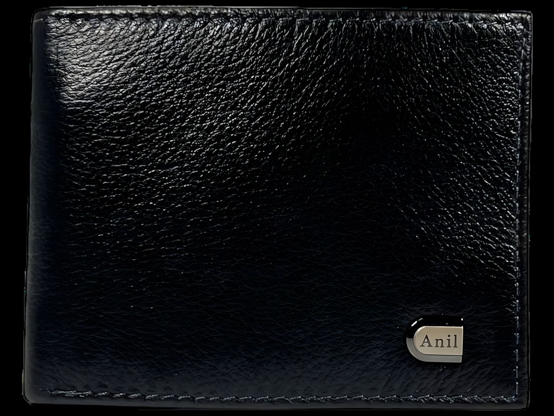 Чоловічий гаманець компактний з натуральної шкіри, чорний, Anil
