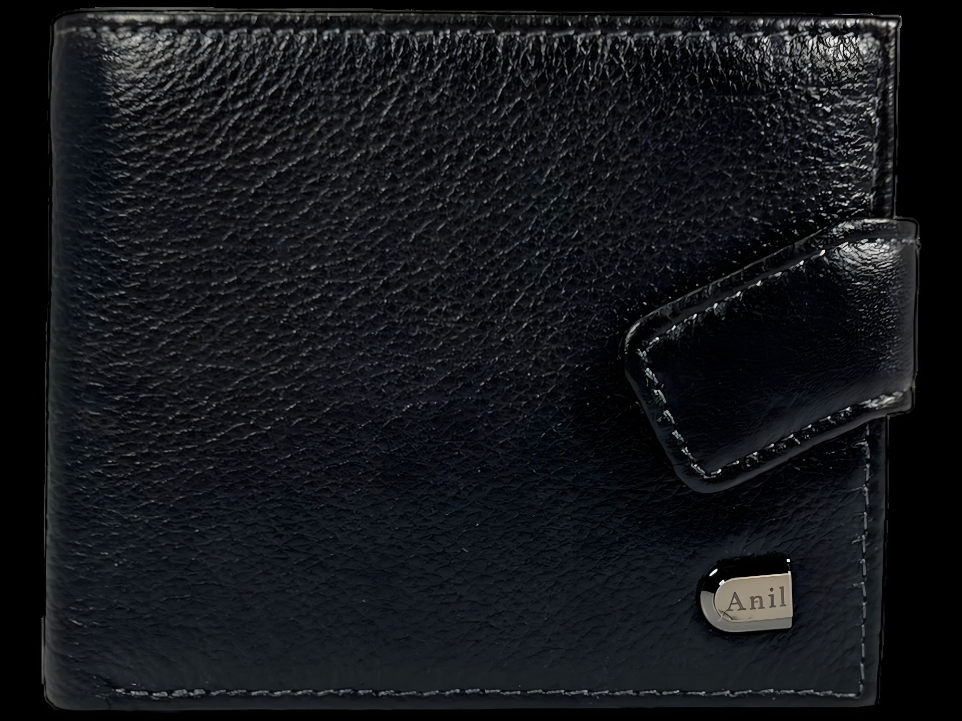 Чоловічий гаманець з натуральної шкіри з кнопкою та магнітом, чорного кольору