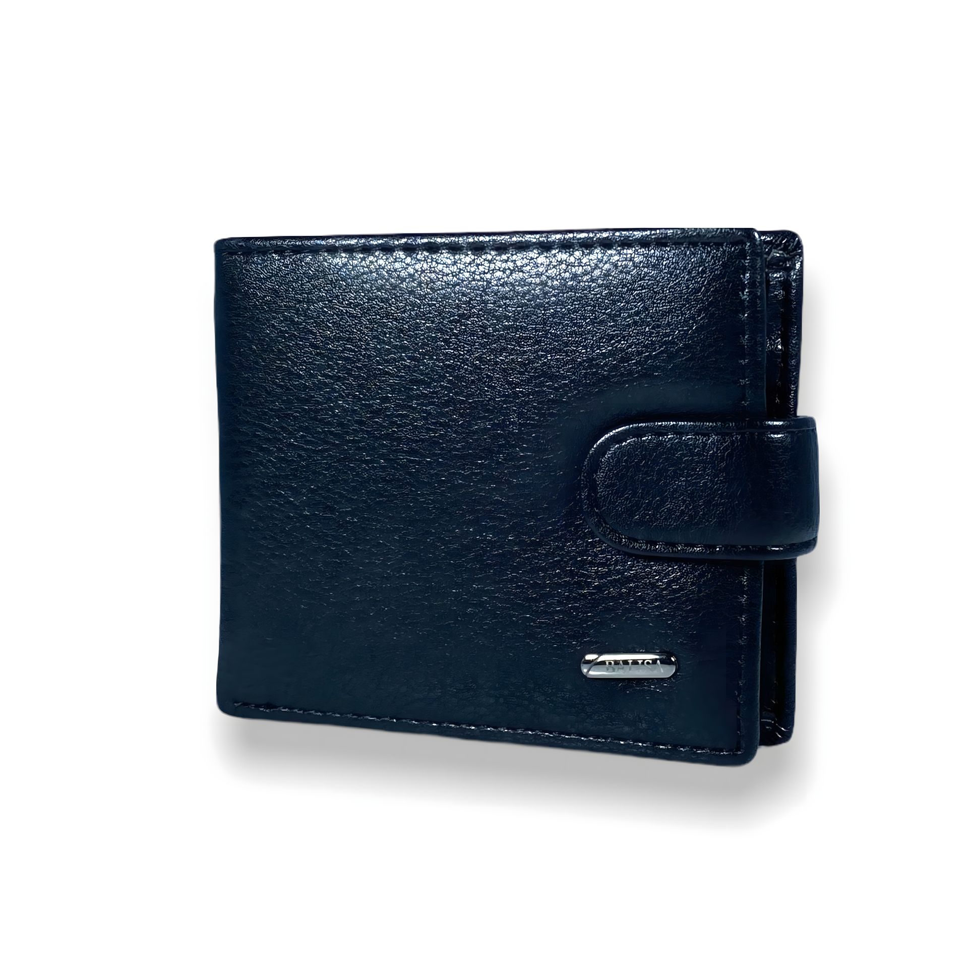 Чоловічий гаманець виготовлений з якісного шкірзамінника і має два відділення для паперових грошей одне на блискавці. Є одне прозоре відділення. Передбачено шість осередків для пластикових карточок. Внутрішнє відділення для монет на кнопці. Гаманецьфіксується кнпкою