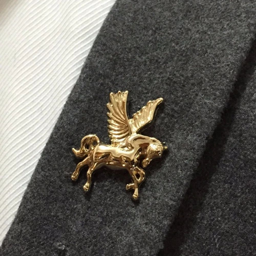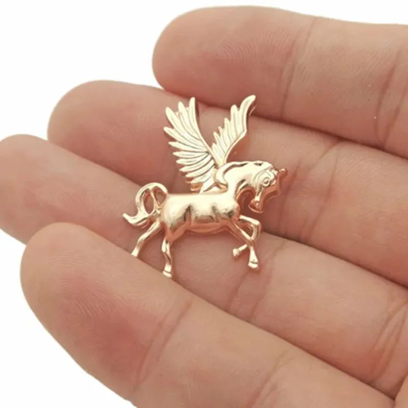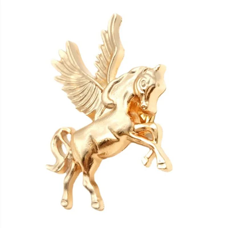 Брошка Пегас кінь з крилами шпилька у вигляді золотистого коня