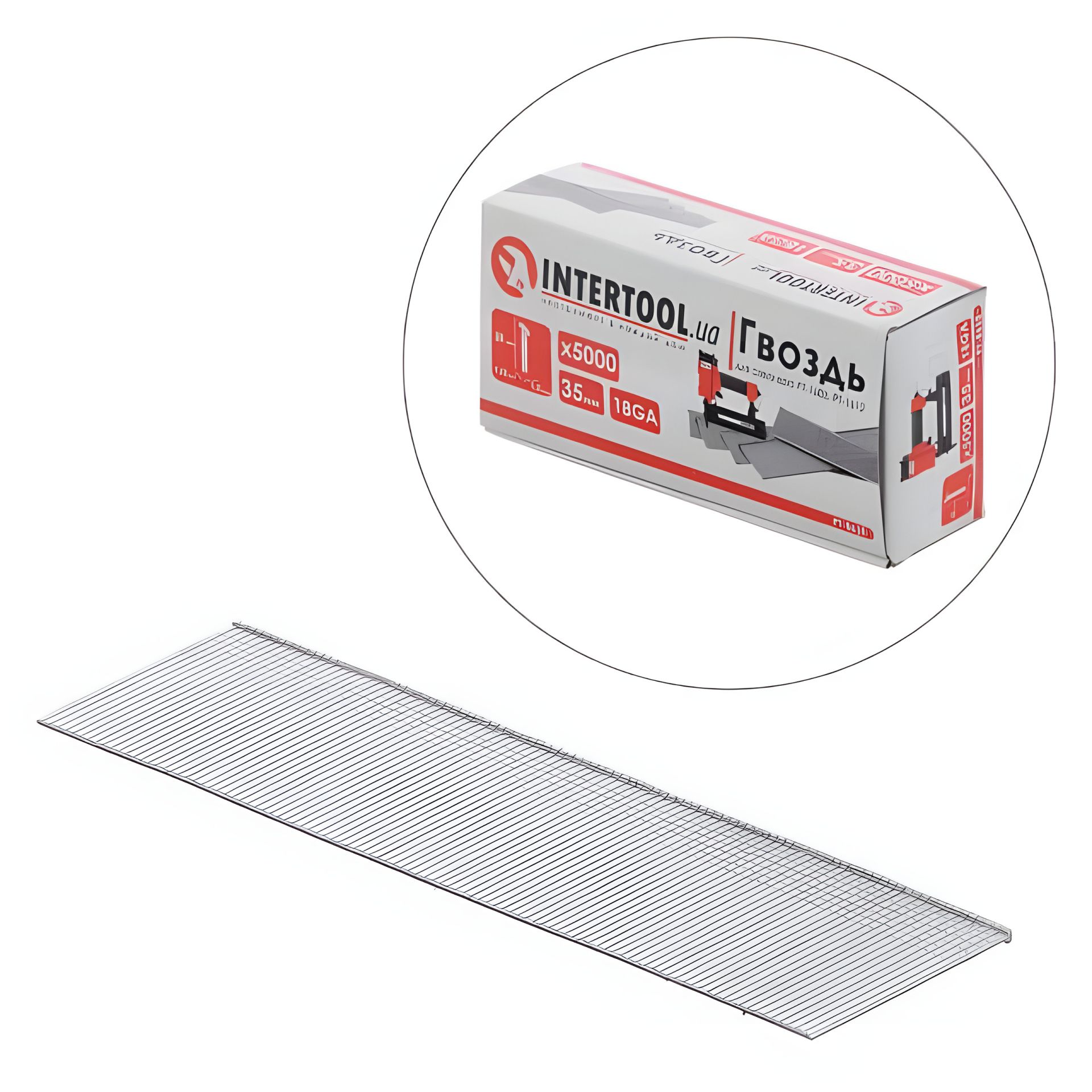 Цвяхи для степлера PT-1603, PT-1612, 35 мм, 18GA, 1,0×1,25 мм, 5000 штук в упаковці від INTERTOOL (PT-8635)