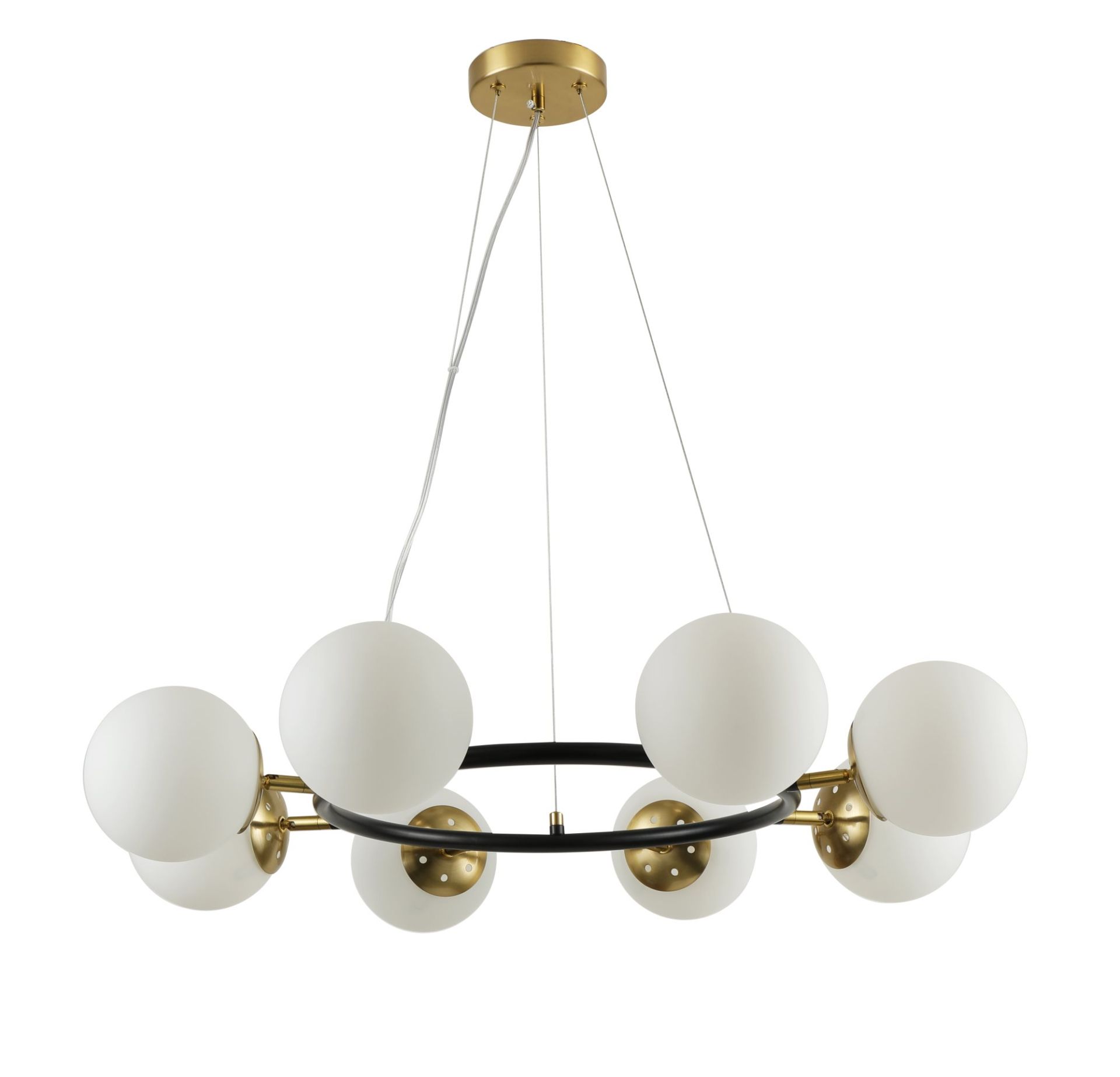 Виготовлений із позолоченого та чорного матового металу, каркас виглядає стильно та сучасно, додаючи люстрі витонченого блиску.