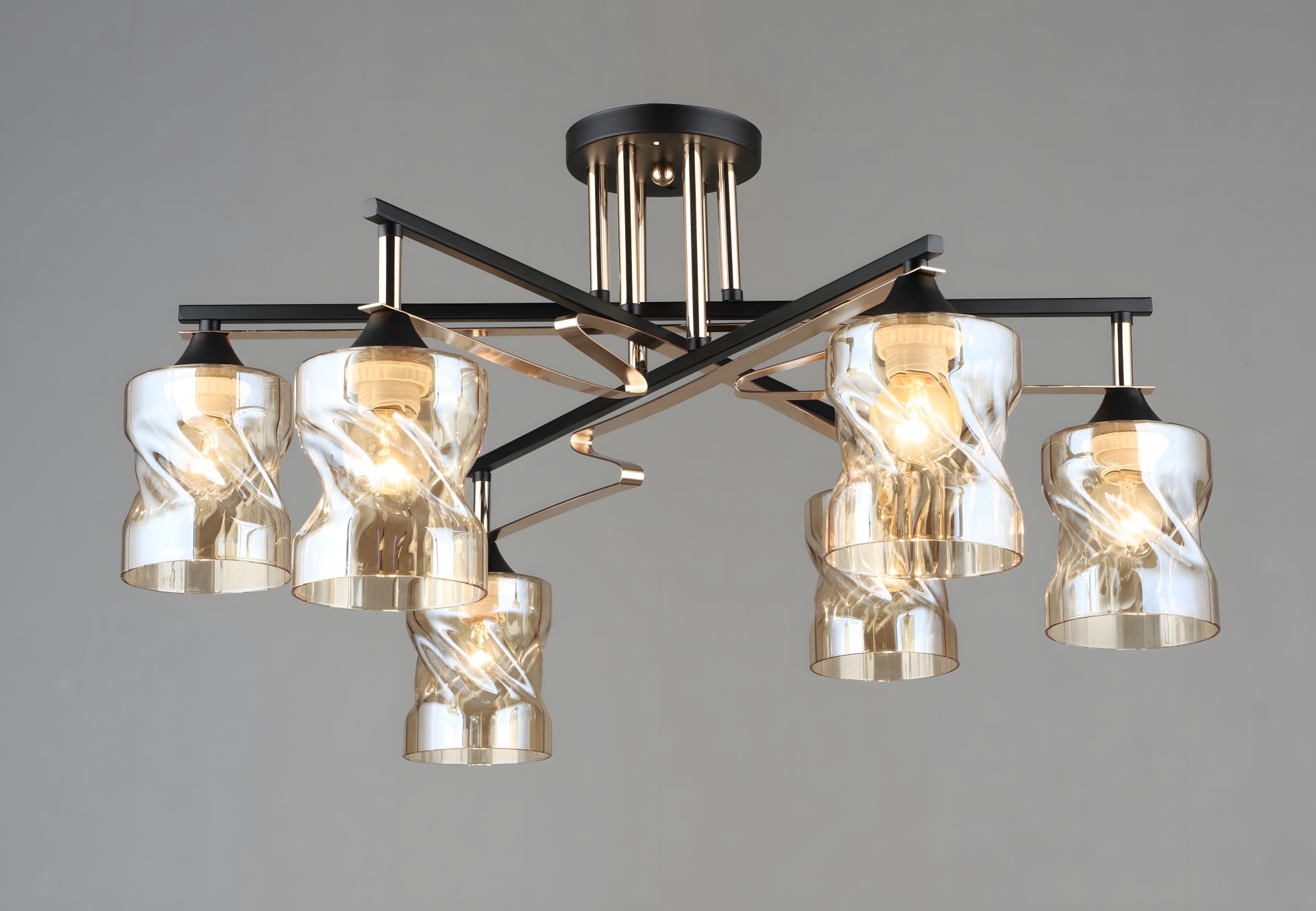Завдяки 6 плафонам зі скла в позолоченому відтінку, люстра видає приємне тепле світло, створюючи затишну атмосферу в будь-якому приміщенні. Цоколь Е27 дає можливість використовувати лампочки до 60 Ватт, будь то енергоощадні або розжарювання.