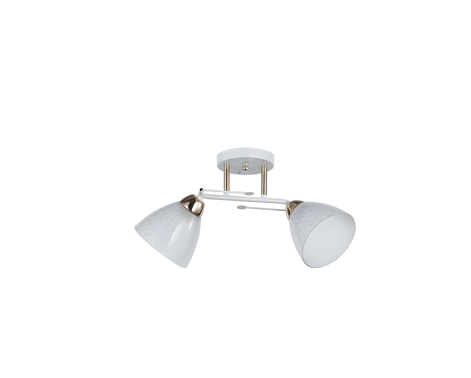 З її розмірами 460 мм довжина, 240 мм ширина і 250 мм висота, ця люстра ідеально підходить для кімнат невеликого розміру. Завдяки металевому каркасу в білому кольорі з позолотою, вона виглядає дуже стильно та сучасно. Два конусні плафони зі скла білого кольору додають неабиякої елегантності, а позолочені деталі на плафонах приносять чарівний блиск.