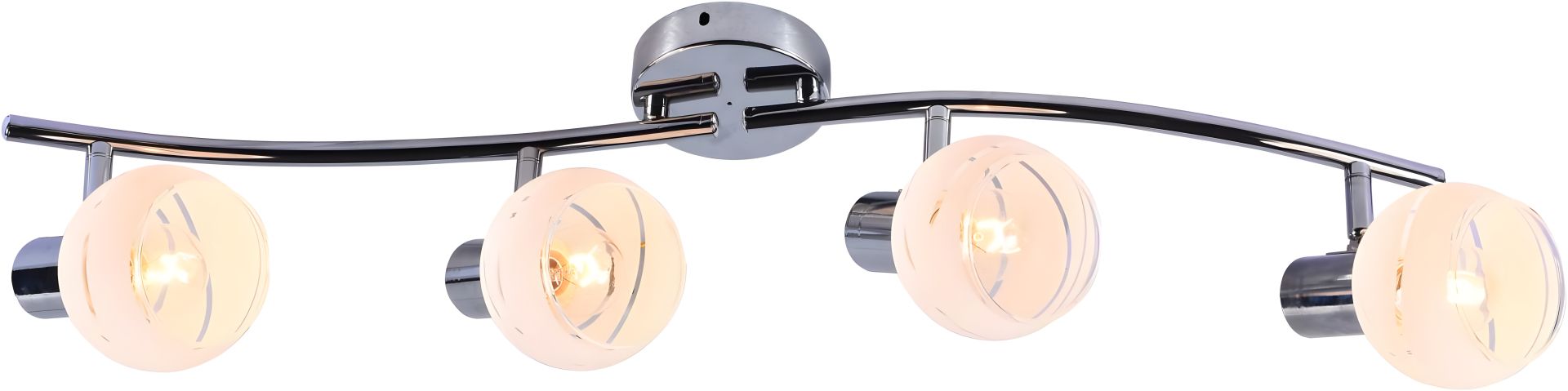 Особливістю люстри є поворотні механізми плафонів, які дозволяють змінювати напрямок світла та легко адаптувати освітлення під потреби приміщення. Плафони мають круглу форму, виконані у білому кольорі, завдяки чому світло м’яко розсіюється та не створює засліплення.