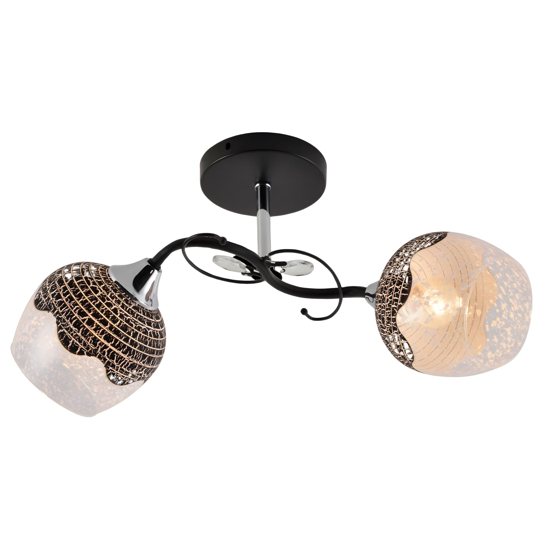 Два скляні плафони забезпечують рівномірне розсіювання світла, створюючи комфортну та приємну атмосферу в будь-якій кімнаті. Завдяки стандартному цоколю E27, ви можете використовувати лампочки до 60 ватт, що дозволяє налаштувати освітлення за вашим бажанням.