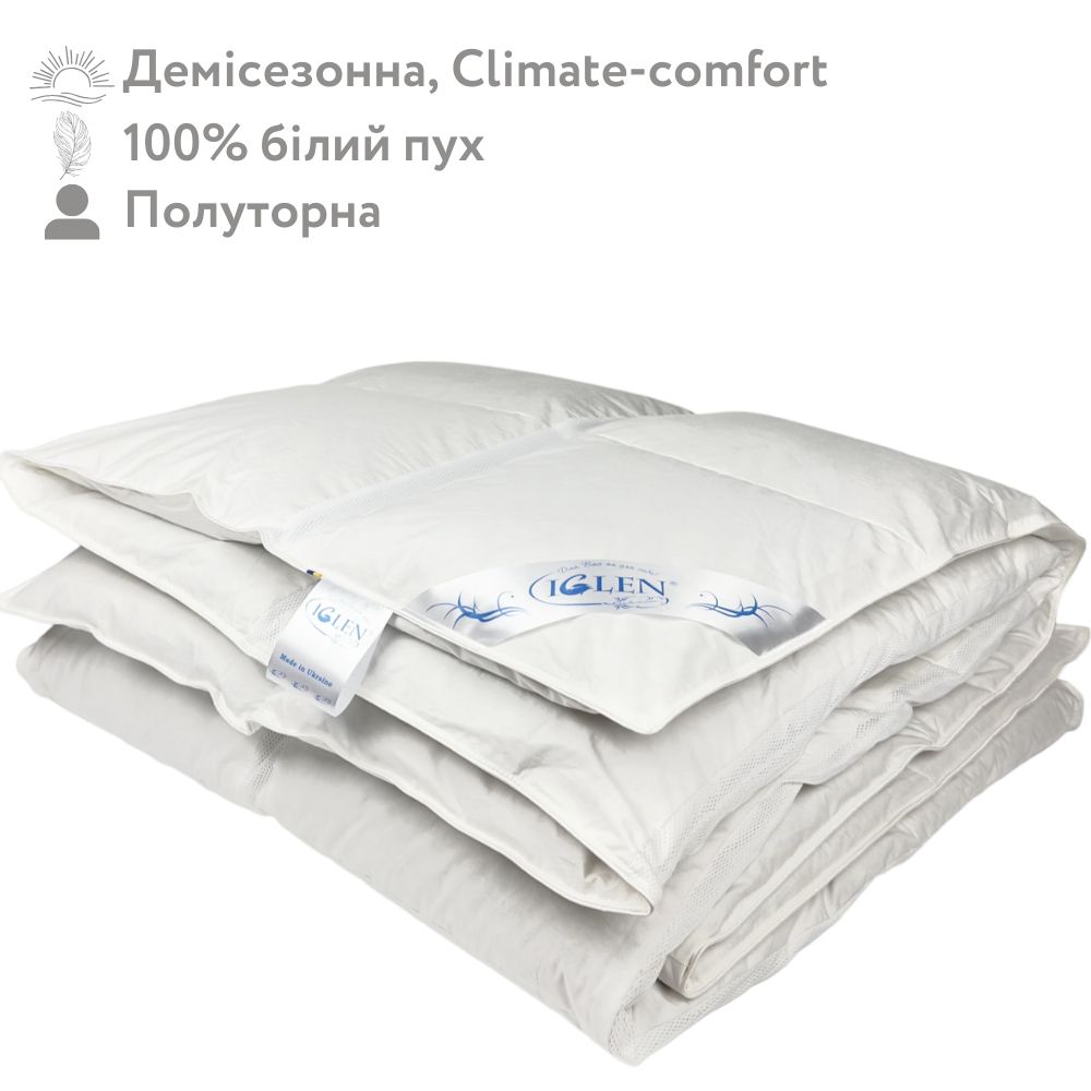 Демісезонна ковдра зі 100% білим гусячим пухом полуторна IGLEN Climate-comfort 140х205 (140205110W)