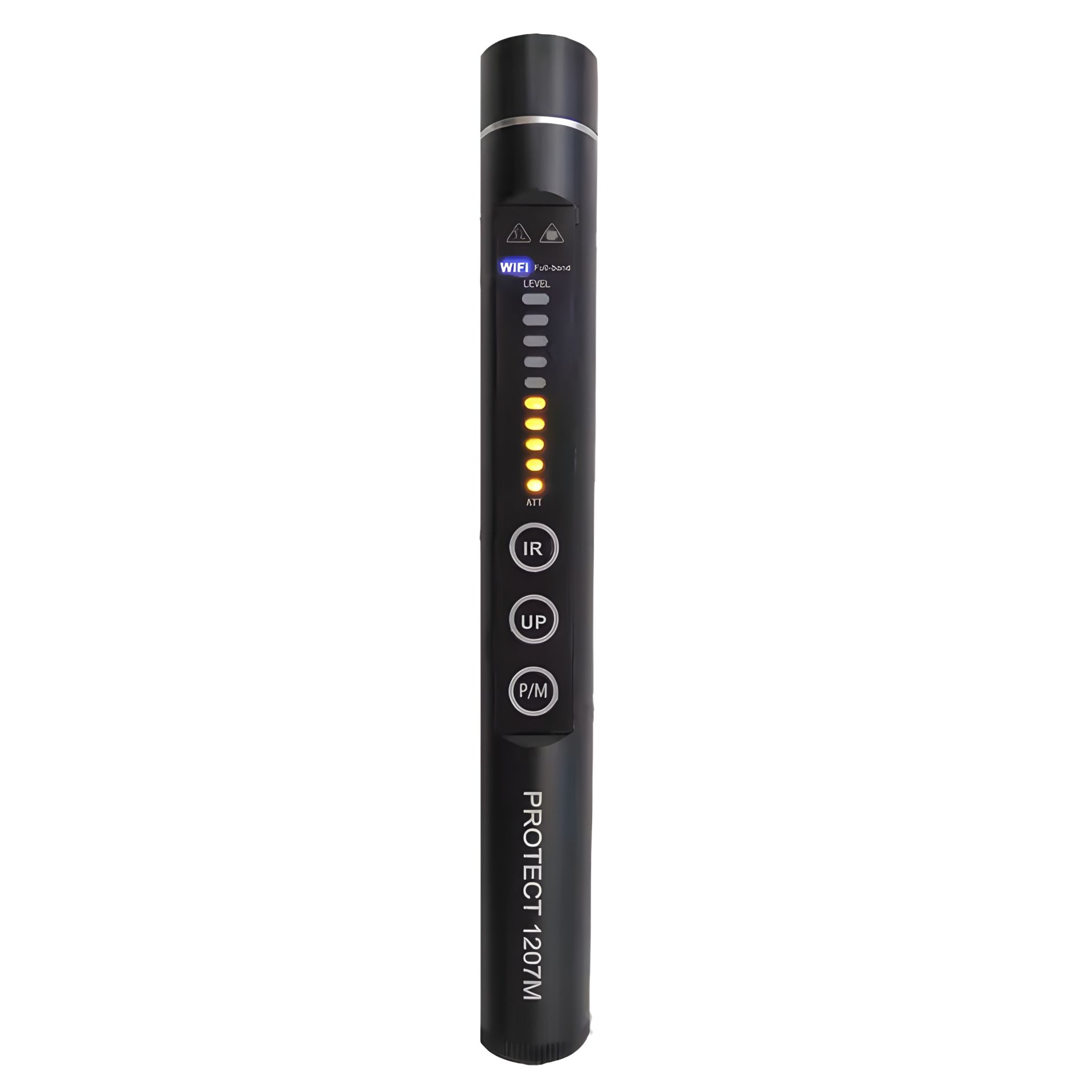 Професійний портативний детектор жучків і прихованих камер - антижучок Protect 1207M - новинка цього року, яка дозволить знайти бездротовий мікрофон, жучок, приховану камеру або пристрої з магнітом як у приміщенні, так і за його межами. До особливостей варто віднести невеликий розмір, автономне живлення, широкий діапазон частот та можливість виявлення прихованих відеокамер як за допомогою детекції радіовипромінювання, так і оптичним способом. Маючи такий детектор жучків, відпадає потреба мати 2 окремих пристрої для пошуку провідних камер і для пошуку бездротових камер і жучків, так в цьому детекторі ці 2 прилади поєднані.