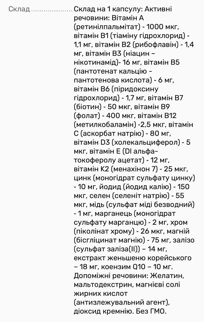 Ця дієтична добавка — це комплекс мінералів та вітамінів, розроблений для зміцнення імунної системи та підтримки здоров’я кісток.