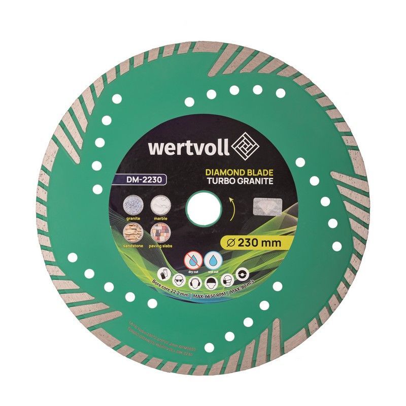 Турбо структура забезпечує ефективне відведення тепла та пилу, дозволяючи виконувати швидке та чисте різання без сколів. Алмазний шар із вмістом 24% алмазів гарантує тривалий термін служби та стабільну якість різання навіть при інтенсивному навантаженні.