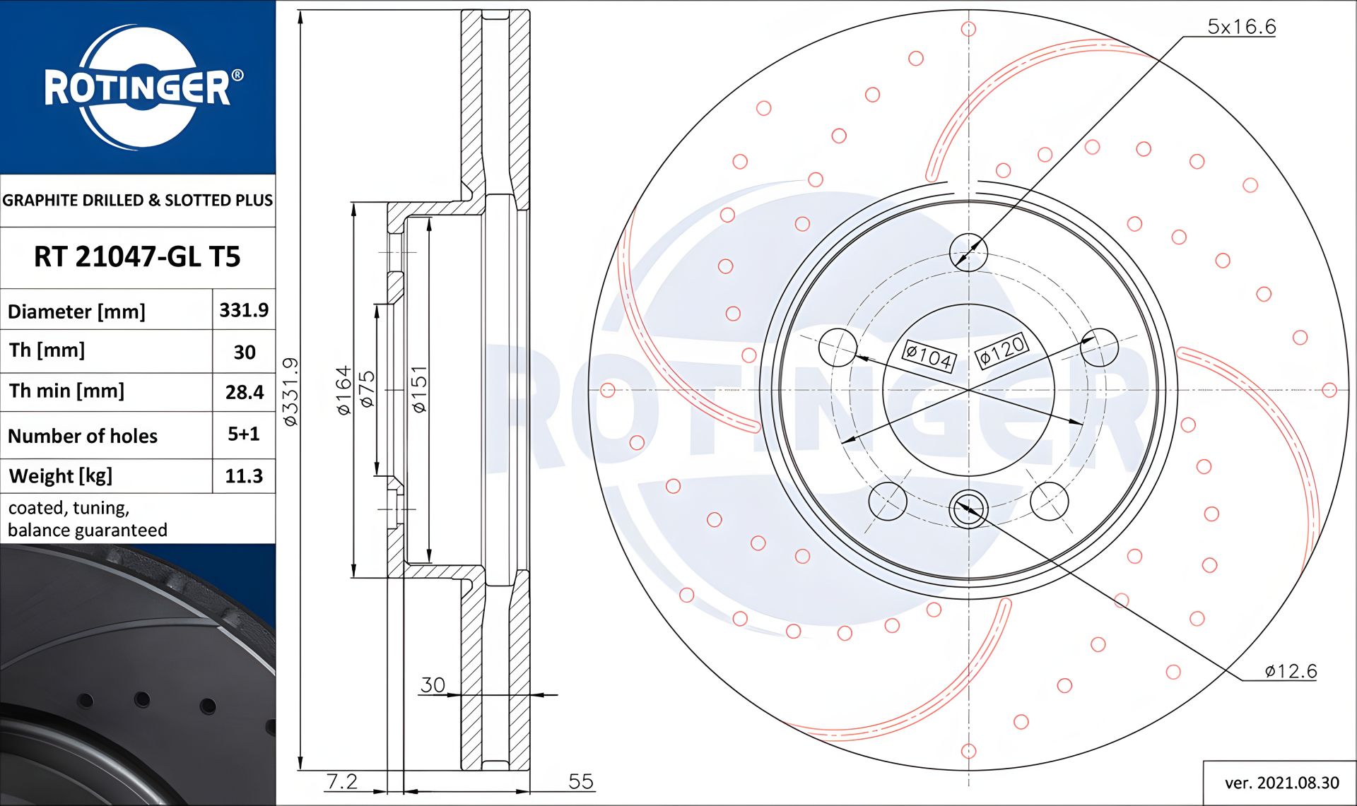 Гальмівний диск BMW X5, BMW X6, ROTINGER (RT21047GLT5)