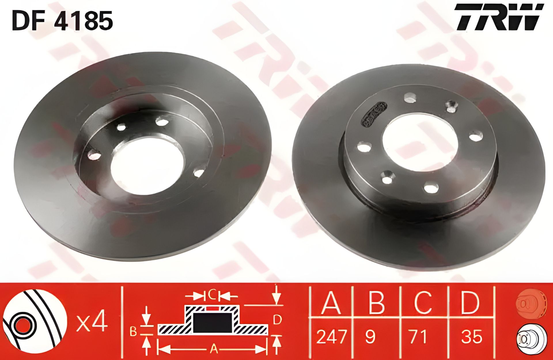 Гальмівний диск TRW, FENGSHEN S30, PEUGEOT 1007 (DF4185)
