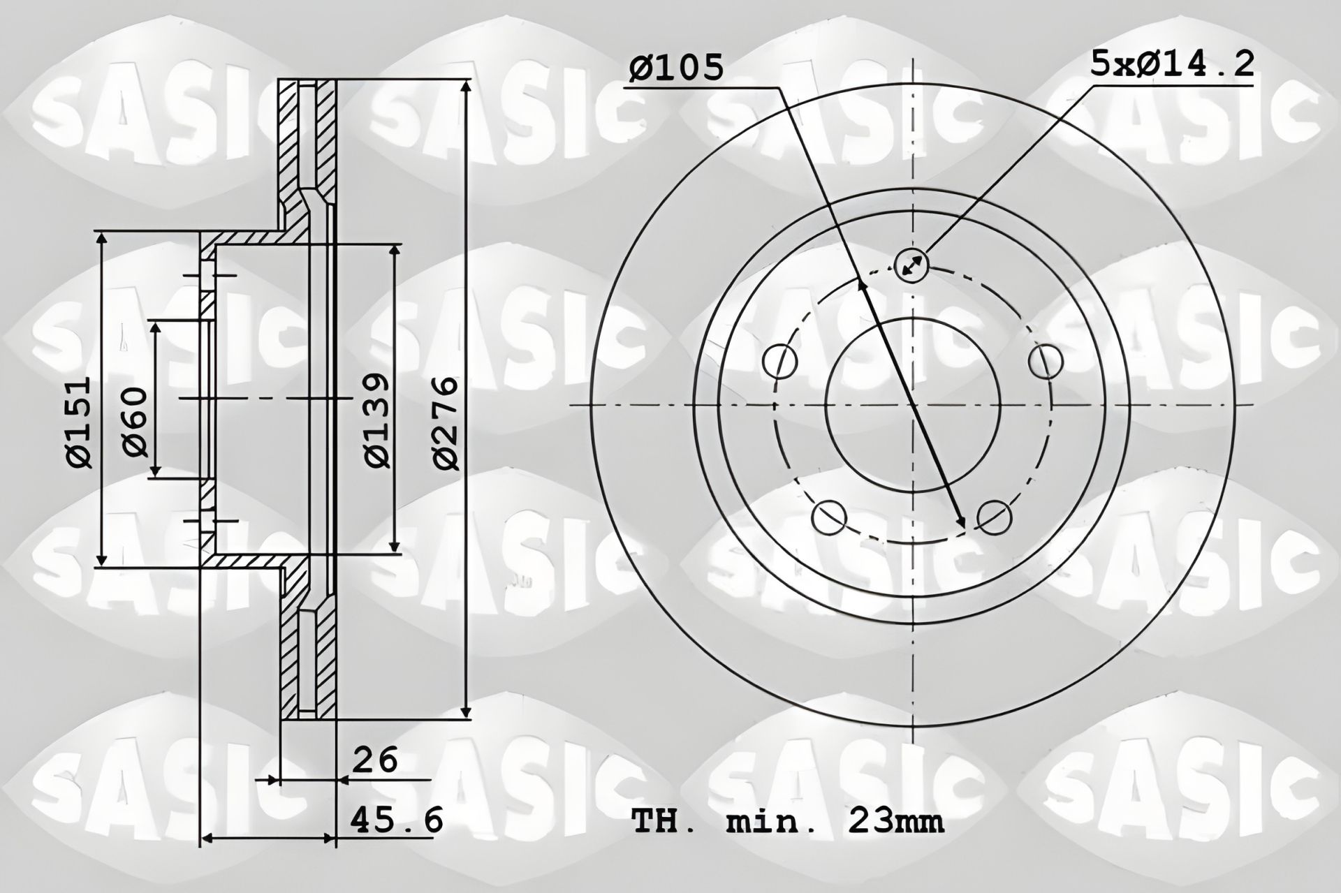 Гальмівний диск для OPEL ASTRA, CHEVROLET CRUZE, Sasic (6106204)
