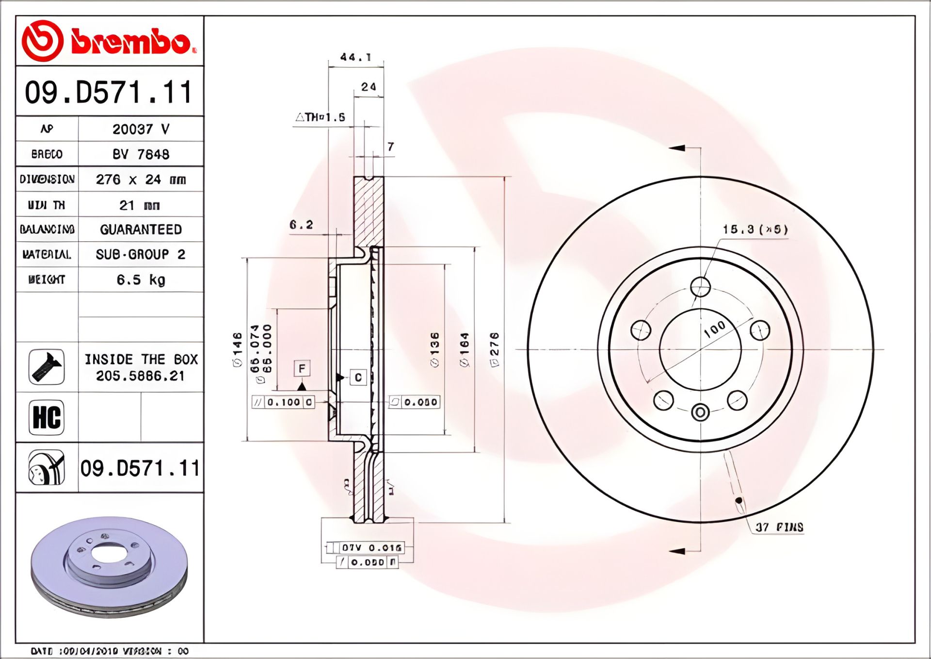 Гальмівний диск SKODA KAMIQ, AUDI A1, VW TAIGO, BREMBO (09D57111)