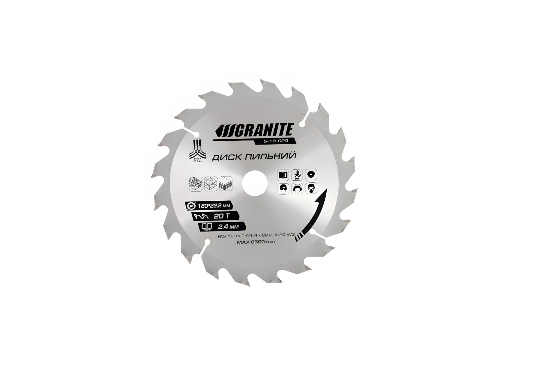 Пиляльний диск для дерева з твердосплавними напайками 180×22.2×20Т адаптер 22.2–20 мм 8400 об/хв – це високоякісний інструмент для швидкого та ефективного розпилювання деревини різних типів.