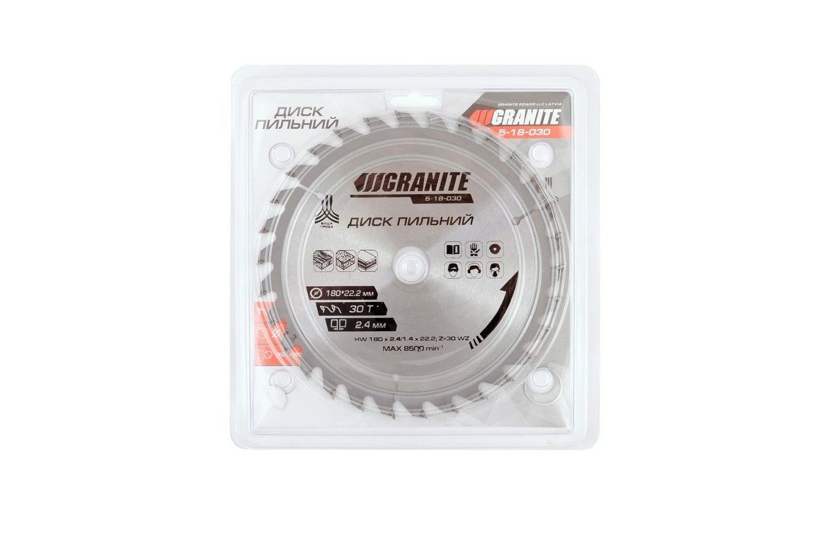Диск пильний для дерева з твердосплавними напайками 180х22.2х30Т адаптер 22.2-20 8400 об/хв MASTERTOOL 5-18-030