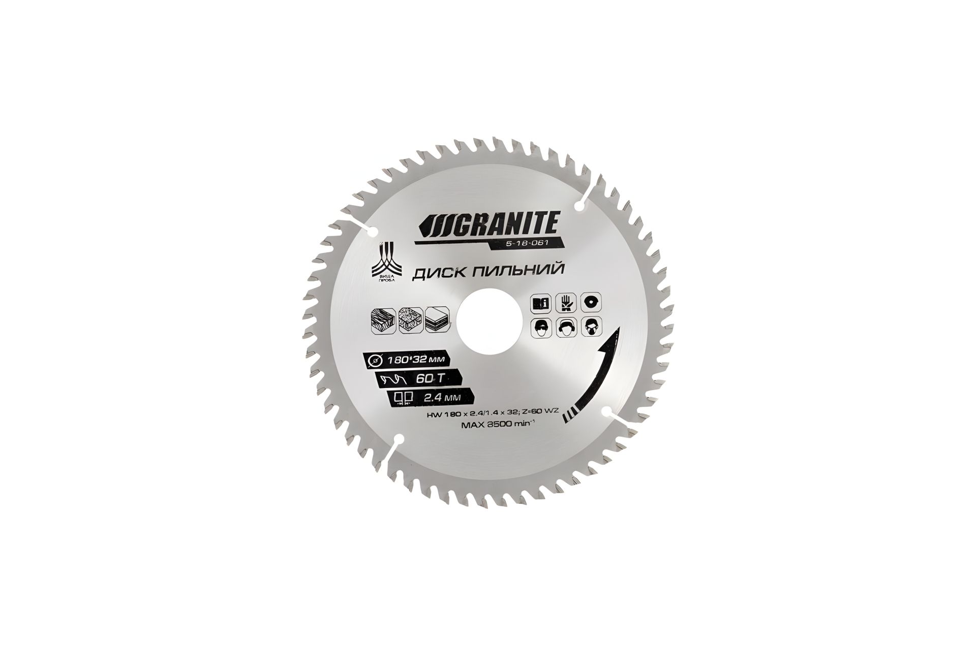 Пильний диск для дерева з напайками твердосплавними 180х32х60Т адаптер 32-30 8400 об/хв MASTERTOOL 5-18-061