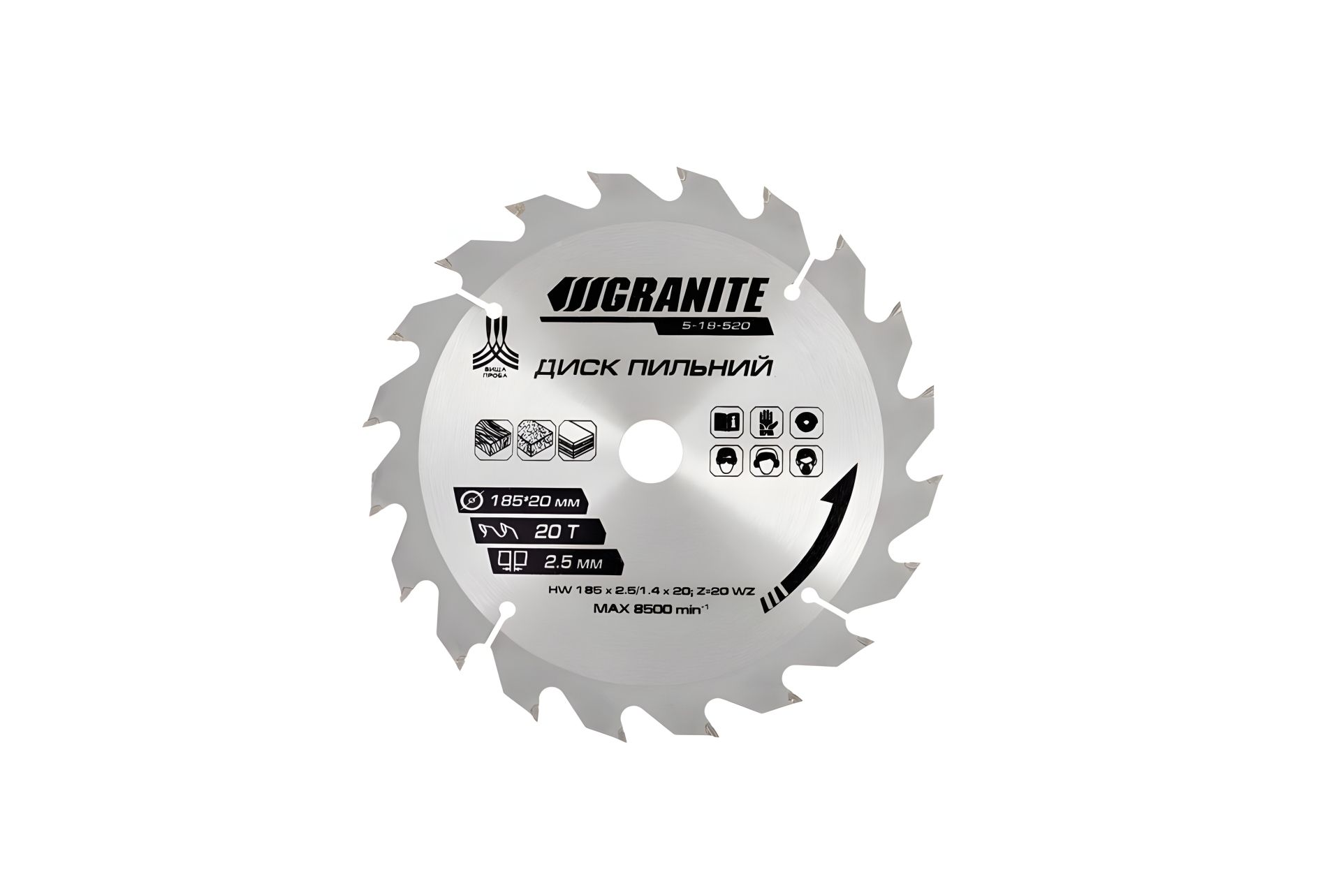 Полотно виготовлене з міцної інструментальної сталі, має стабільну жорсткість і стійкість до перегріву. Адаптер 20–16 мм забезпечує сумісність із різними моделями циркулярних пилок. Максимальна швидкість обертання - 8200 об/хв.