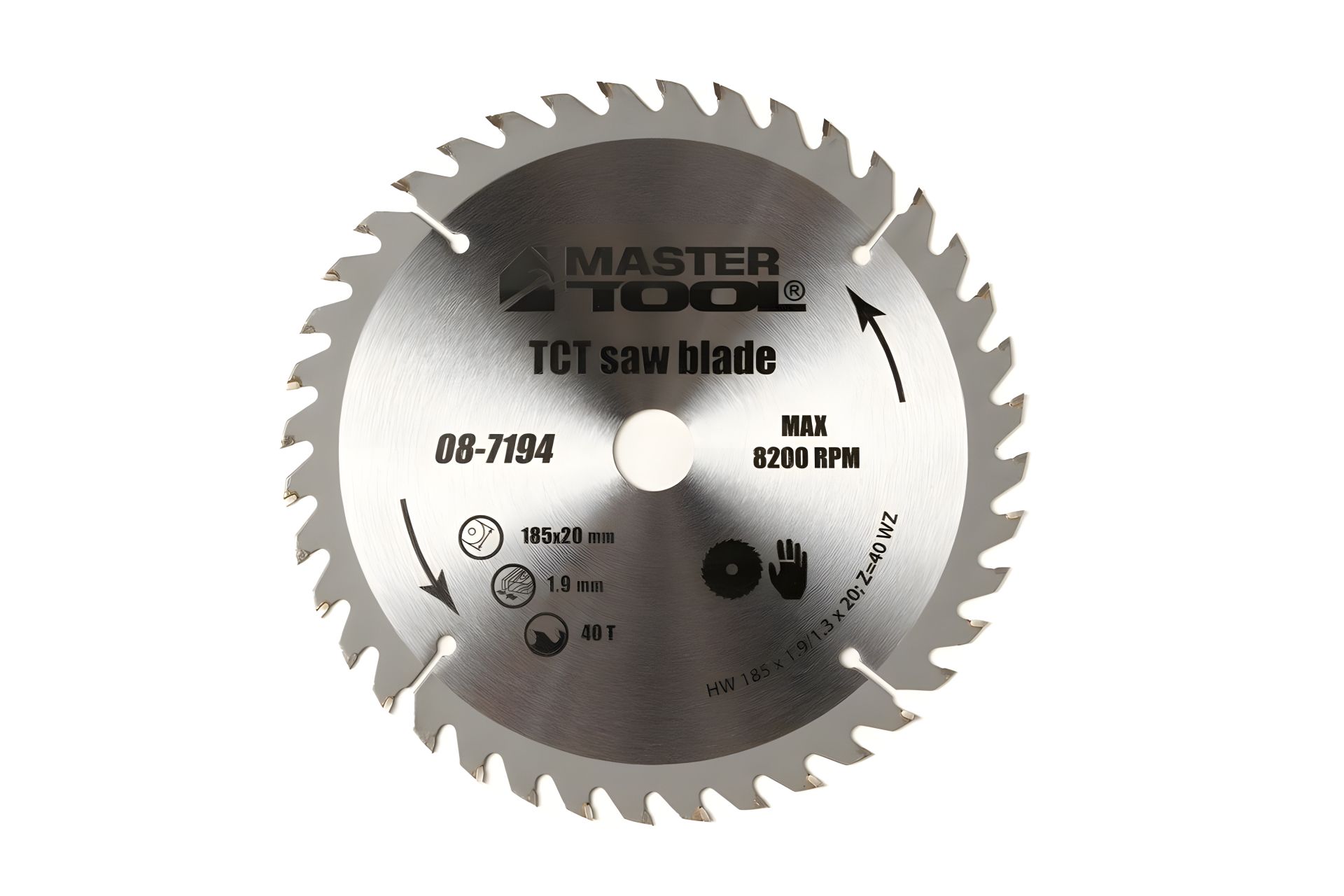 Пильний диск для деревини з твердосплавними напайками 185х20х40Т адаптер 20-16 MASTERTOOL 08-7194