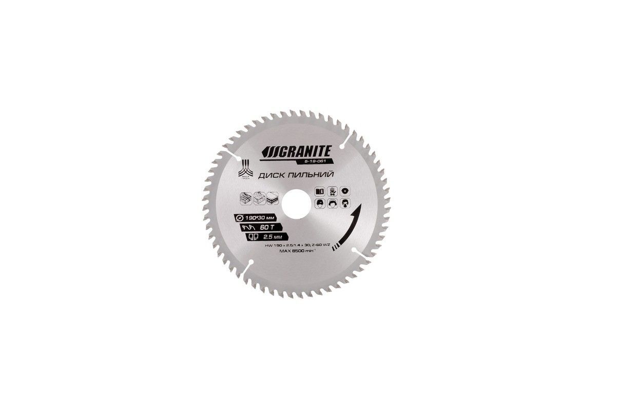 Диск пильний для дерева з твердосплавними напайками 190х30х60Т 8000 об/хв від MASTERTOOL 5-19-061