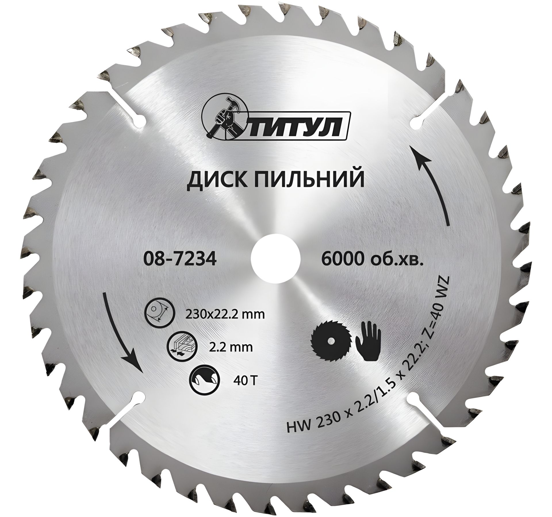 Пильний диск для дерева 230х22.2х40Т з твердосплавними напайками MASTERTOOL 08-7234