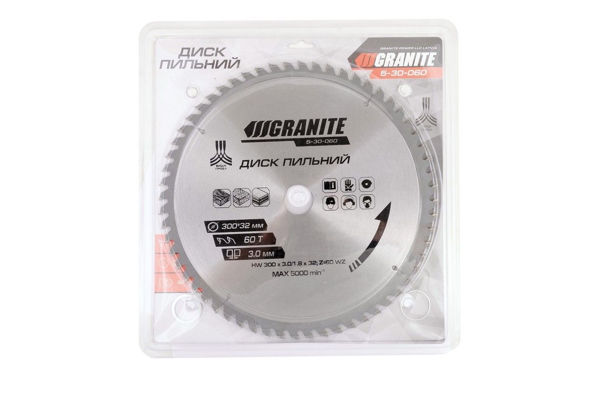 Пильний диск для дерева з твердосплавними напайками 300х32х60Т адаптер 32-30/32-25.4 5100 об/хв MASTERTOOL 5-30-060