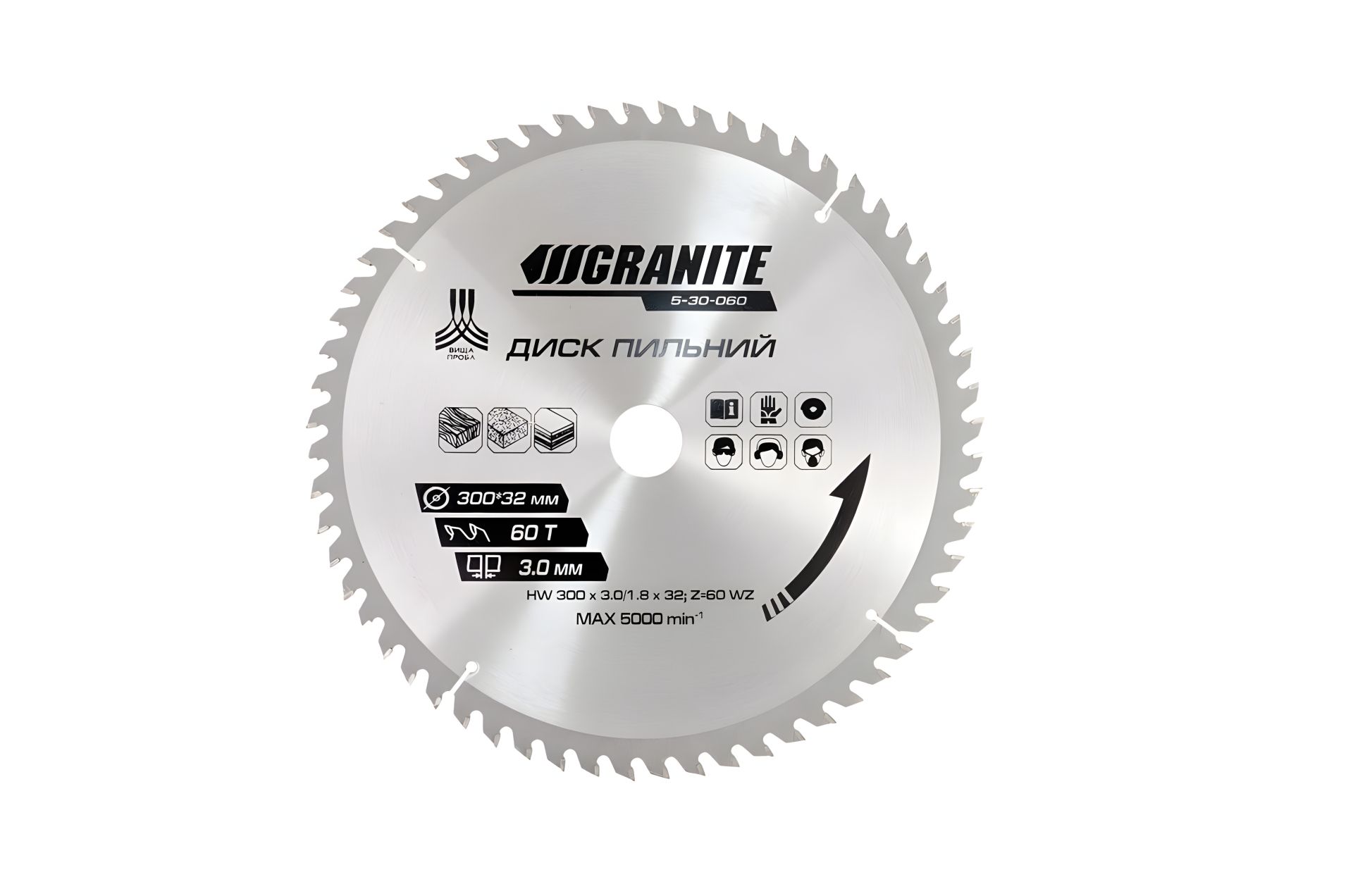 Пиляльний диск для дерева з твердосплавними напайками 300х32х60T адаптер 32-30/32-25.4 5100 об/хв — професійний диск для чистого та швидкого розпилу деревини, фанери, ДСП та МДФ. Оснащений 60 твердосплавними зубами (TCT), що забезпечують рівний різ без задирок навіть при інтенсивному використанні.