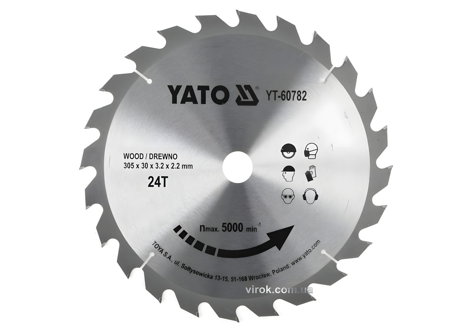Диск пильний победітовий по дереву YATO: 305x30x3.2x2.2 мм, 24 зубці, RP M до 5000 1/хв