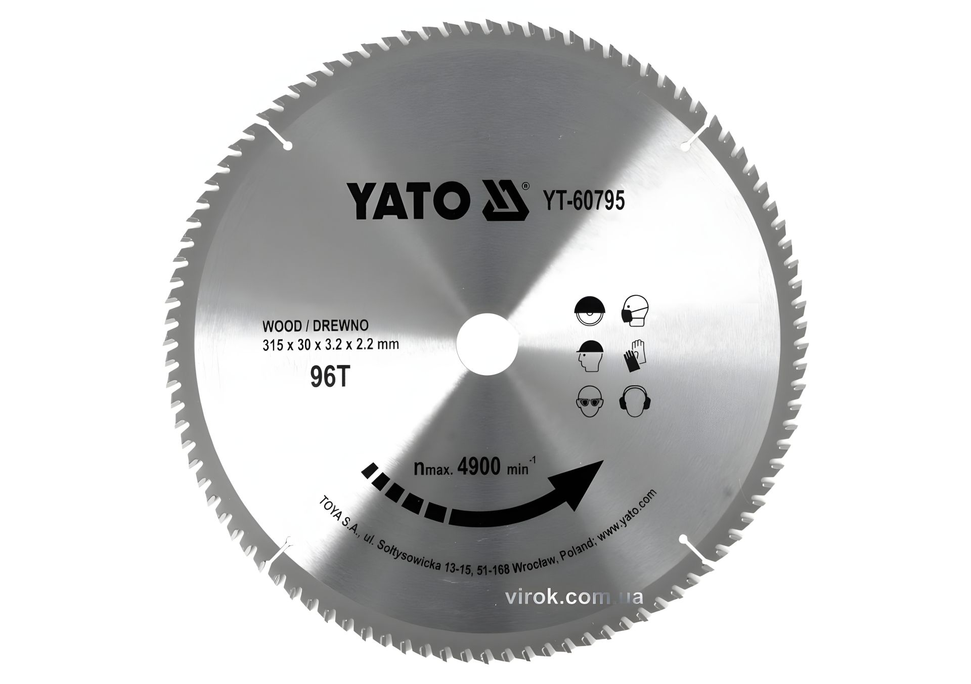 Побідитовий диск пильний по дереву: 315x30x3.2x2.2 мм, 96 зубців, RP M до 4900 1/хв YaTo YT-60795