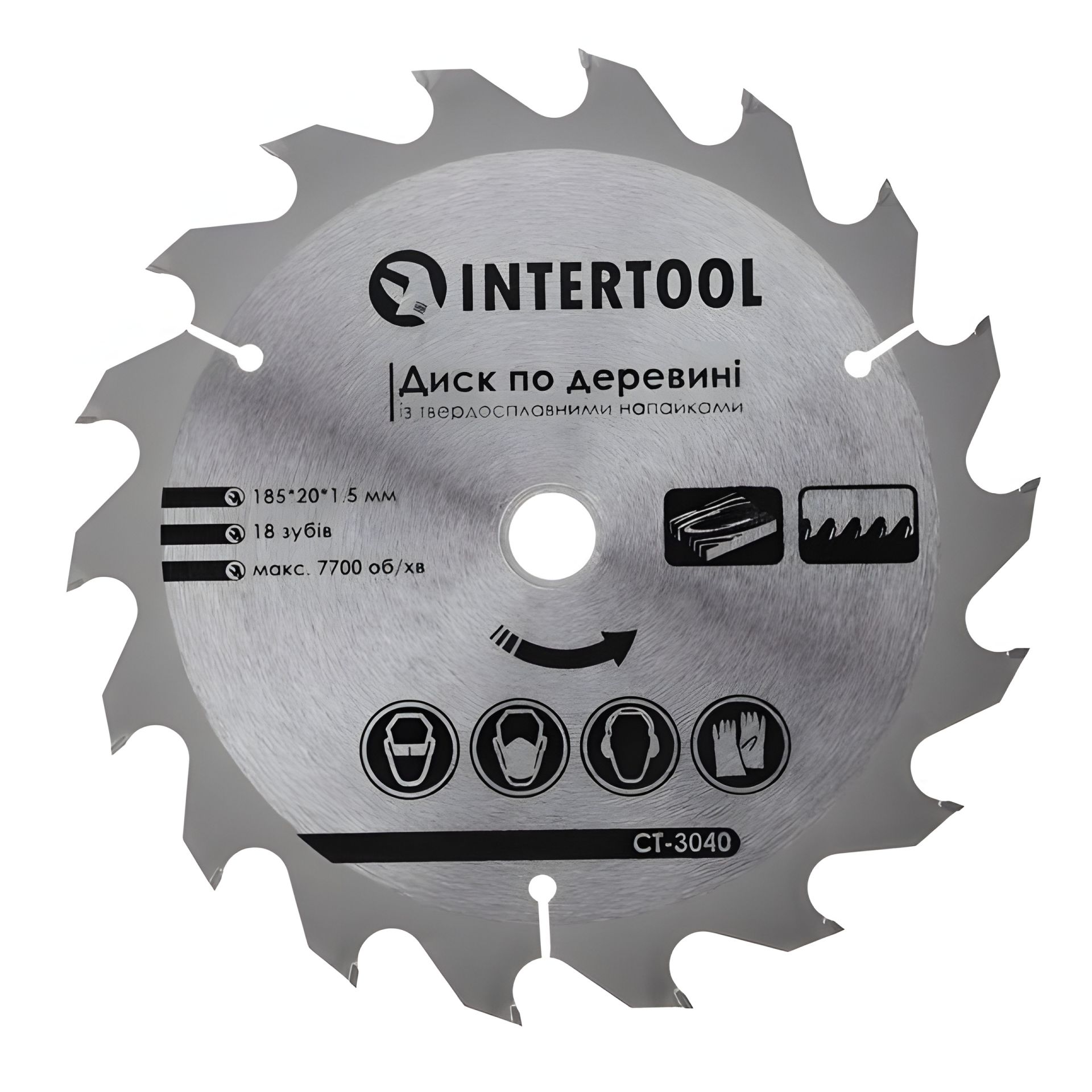 Диск з твердосплавними напайками по деревині, 185×20×1,5 мм, 18 зубів, 7700 об/хв INTERTOOL CT-3040