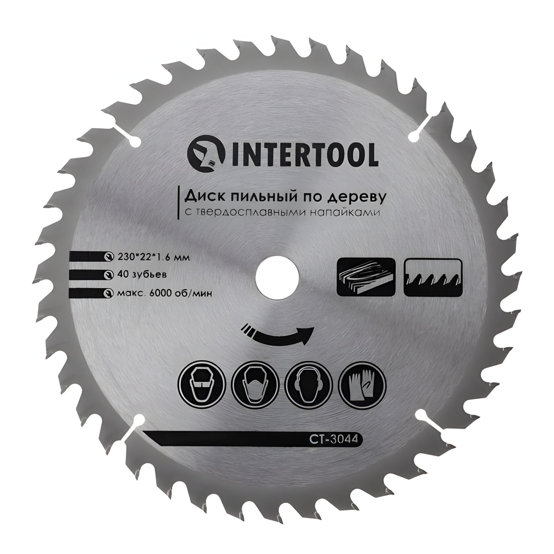 Диск по деревині з твердосплавними напайками, 230×22,2×1,6 мм, 40 зубів, 6000 об/хв INTERTOOL CT-3044