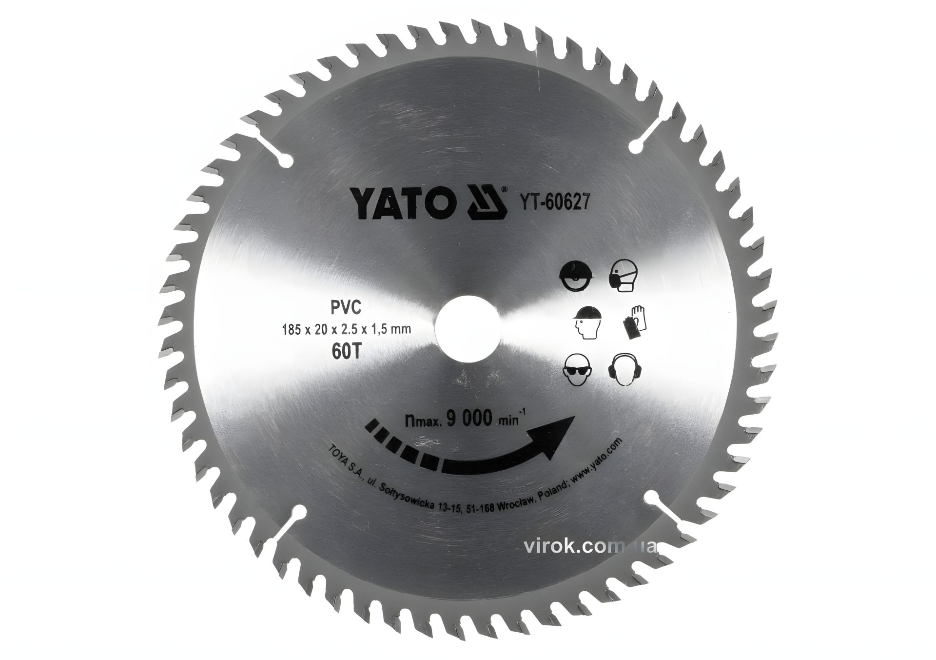 Пиляльний Диск по ПВХ: Ø=185х2.5x20 мм, 60 зубів, RPM до 9000 1/хв YaTo YT-60627