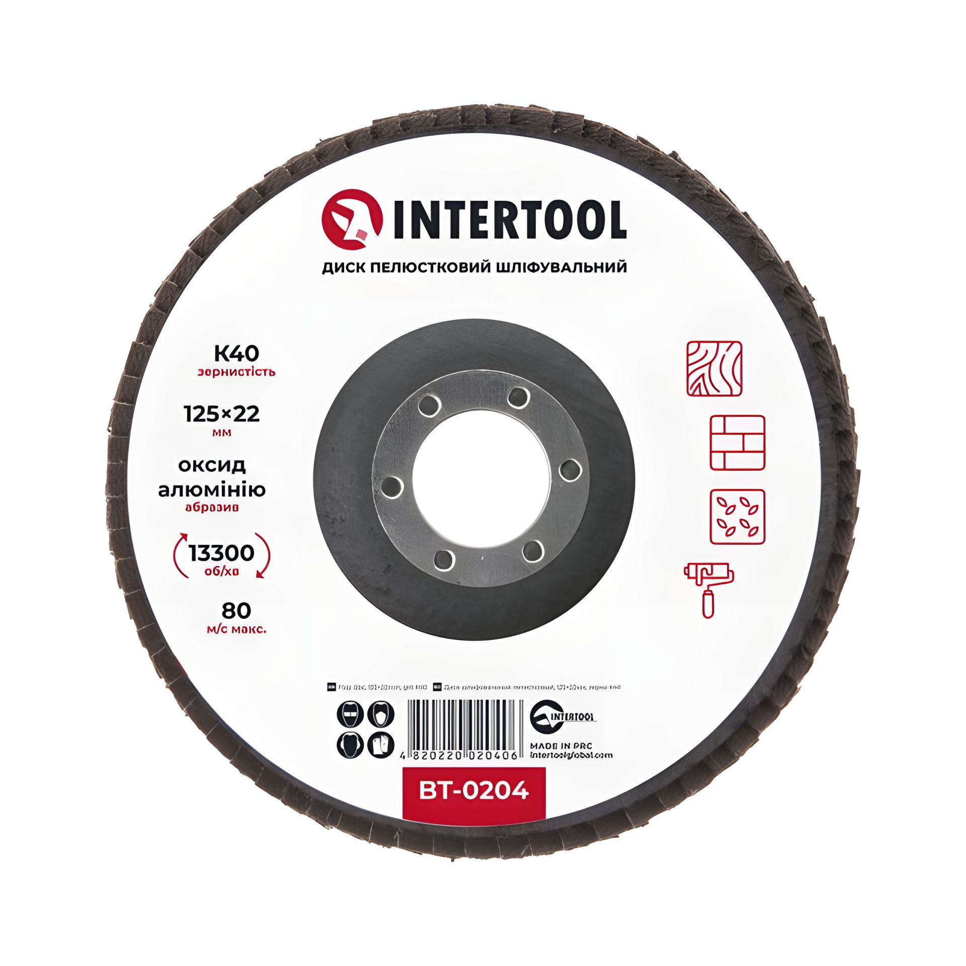 Інструмент INTERTOOL: шліфувальний диск пелюстковий 125×22 мм, зерно K40, 13300 об/хв